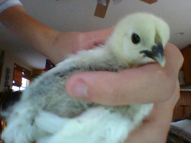 These arent great pictures but you try taking them with a computer web cam, but what color do you think thus silkie will turn out? He is purebred, I got him from lacrystol. When he was born he was all yellow.