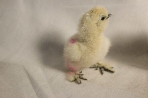 @kada6305The chick with the chipmunk like stripes on its back is most likely a partridge. I have no idea of what the other one is. They'll start to show colors in about a week when their wing feathers start to come in. They're cute! What's the pink color on the one?
