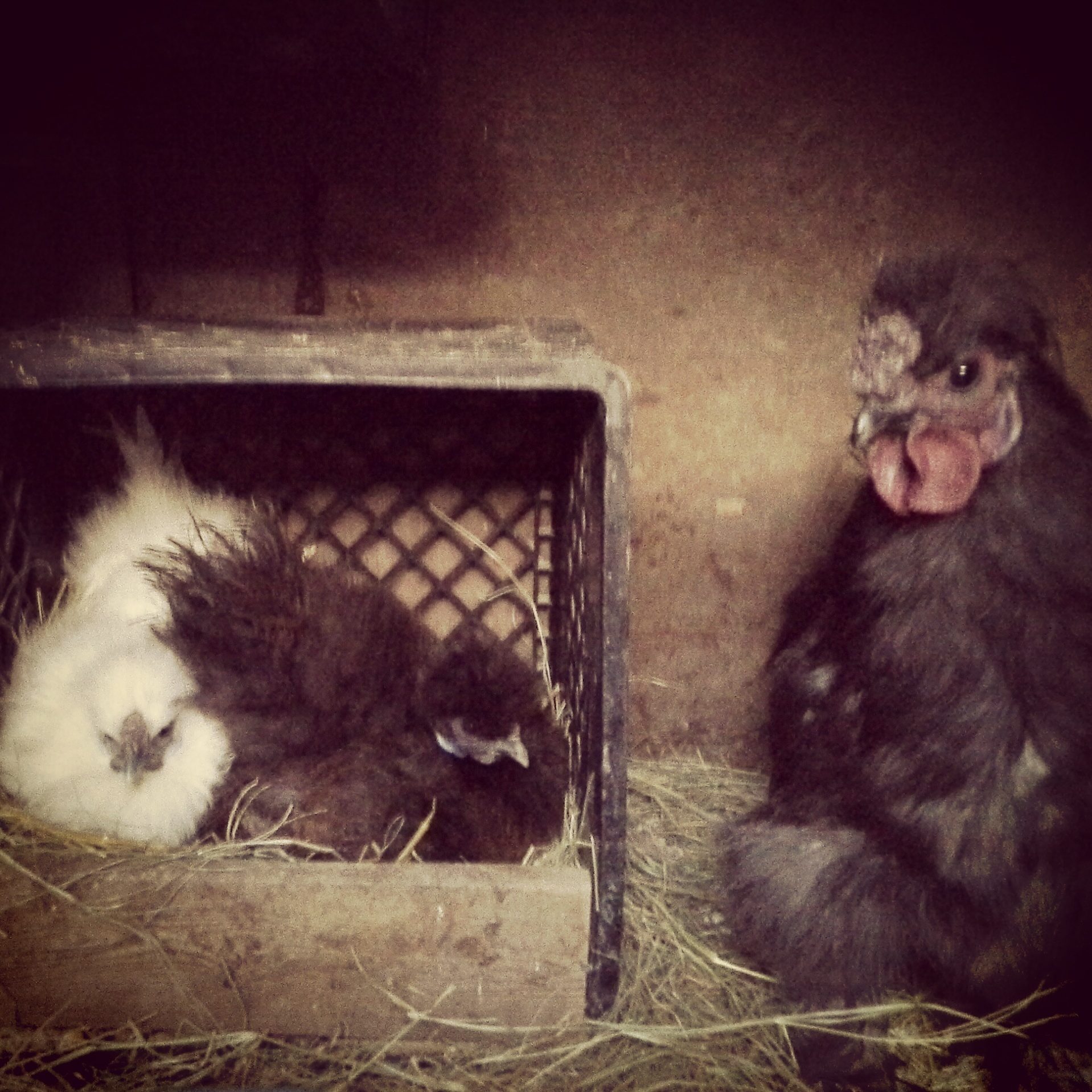 My poor white hen, Plain Jane, has sat on 24 eggs. All are developing nicely. Two days ago, I found Penny sitting in there too! Jane puts in the hard work and dedication, and Penny just swoops in at the end! I candled today and everyone is dark and veiny. No quitters so far...Im thinking theyre almost done