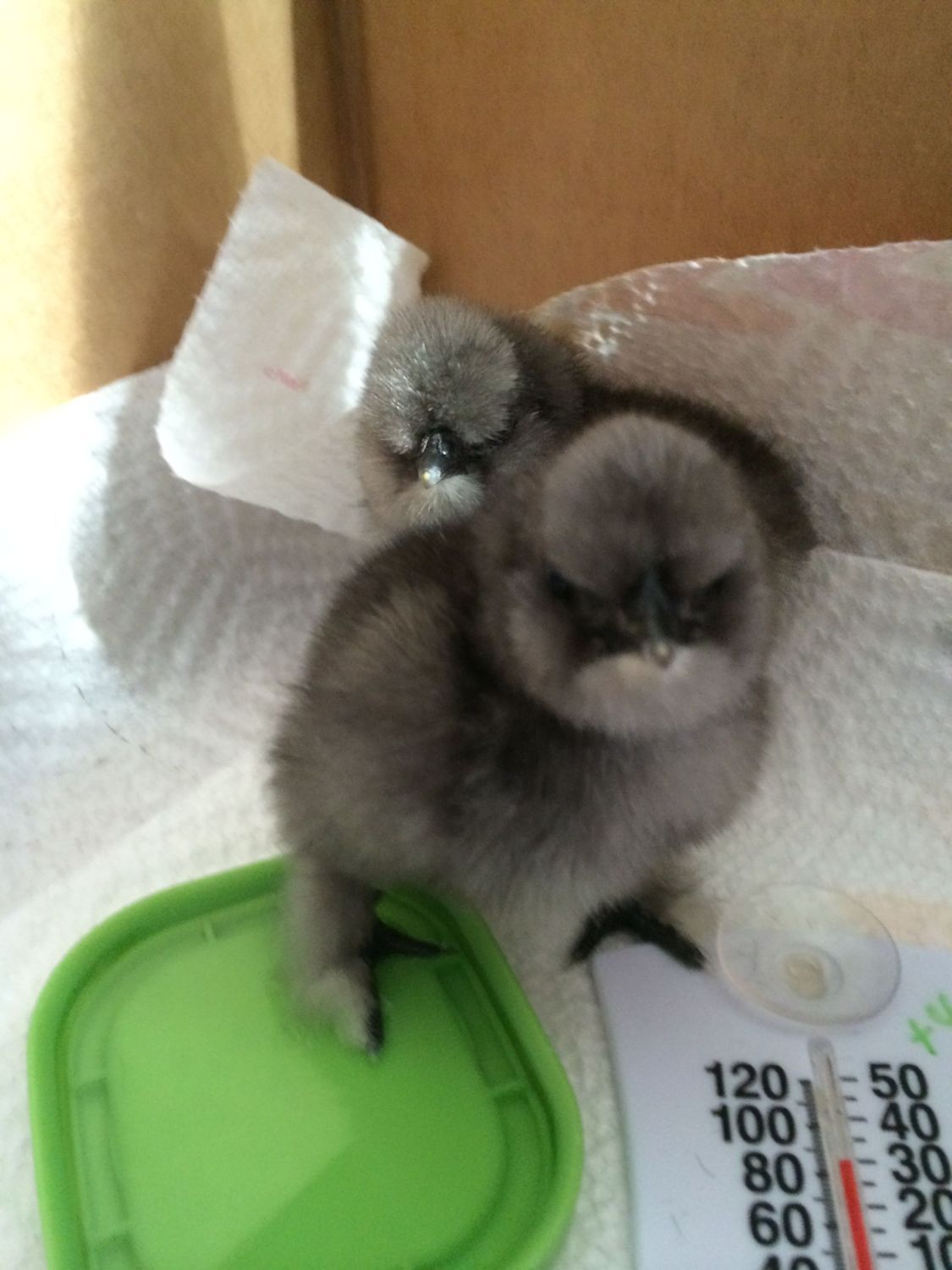 I have two partridge hens, a blue hen and a black with silver leakage roo. I'm not sure which hen laid the eggs but they were the same egg. I'm guessing from the blue hen but these just hatched two days ago. So cute.