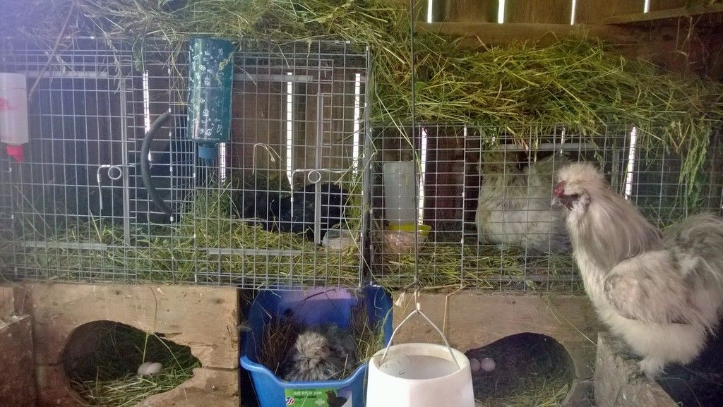 A few of the adorable residents in the hutch, the older chicks have a good sized pen to roam during the day: