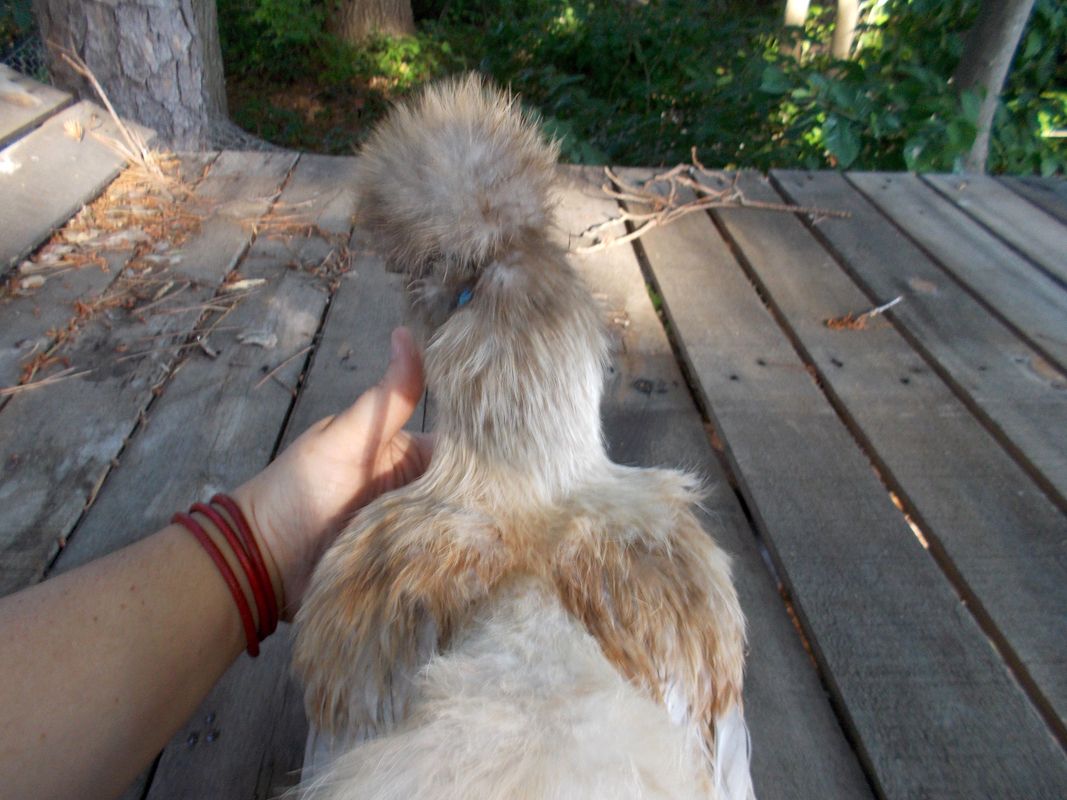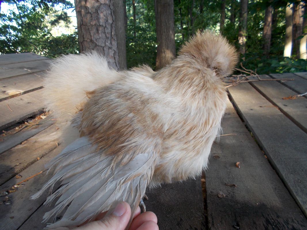 As a chick, she looked like a reeeeally pale, diluted grey/blue partridge. Now, she has a lavender/grey undertone, creamy straw backside area, and a dusting of red. I want to say she's silver partridge with red leakage, but not really sure if that's the 'proper' terminology. ^^; Also not sure of her lineage, though there were two others that looked just like her in that hatch. She's the only one I still have, and I doubt I have her mother now. Ahh the joys of a mixed color flock lol!