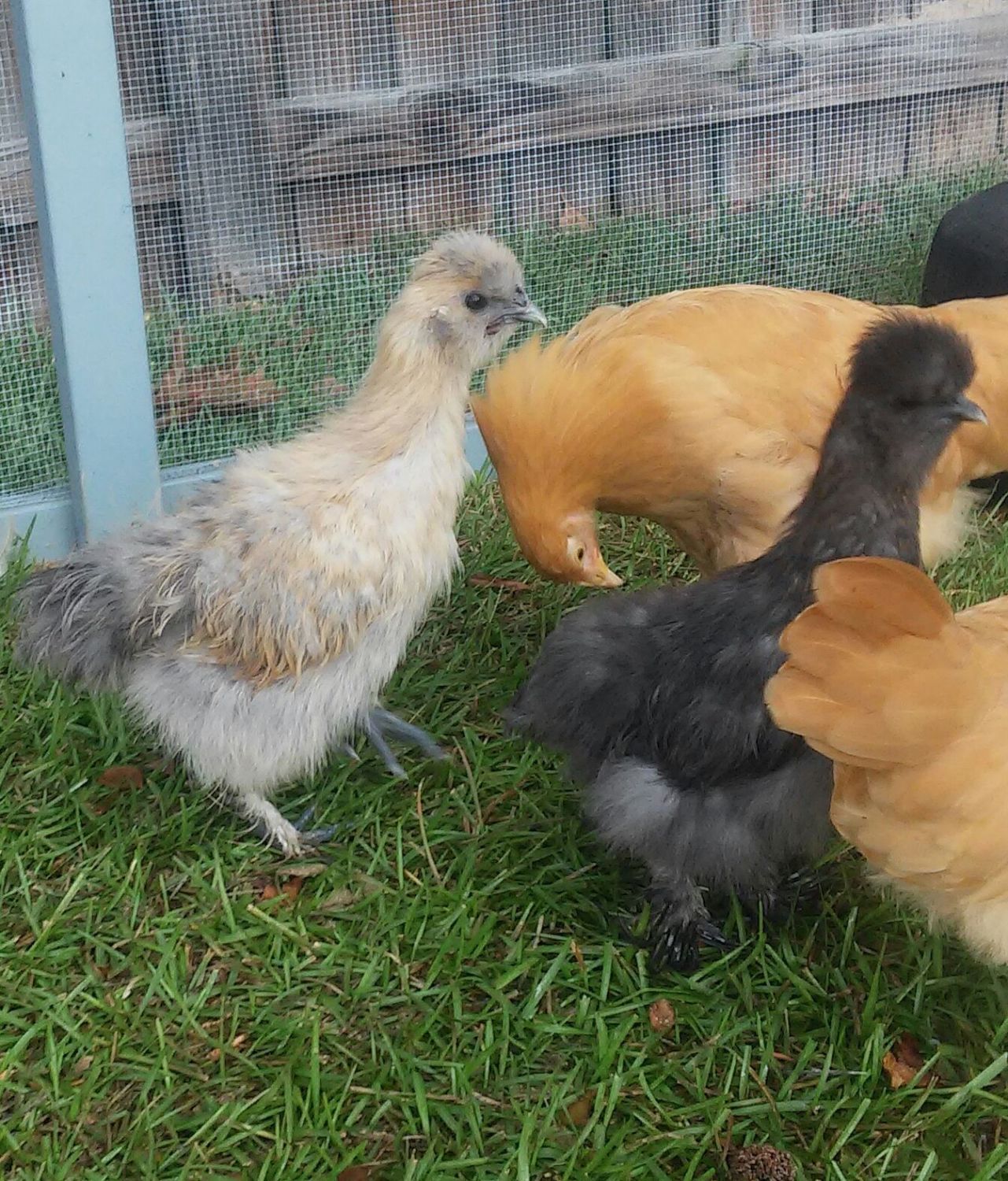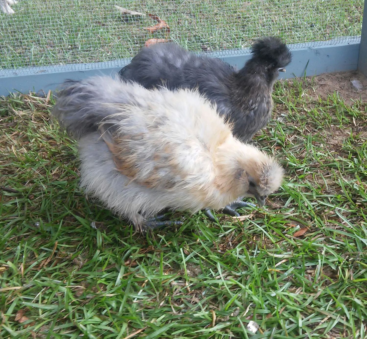 yes, they do indeed change colors! It's fun surprises when they aren't what you think they are.The Blue is splash but appears to have red leakage around the hackle. The other could be a very light partridge .Hello Everyone! I have 2 silkies. I believe 1 is blue and the other is splash. This is my first time owning any chickens so I may be wrong. They are 10 weeks old. I am trying to figure out the sex but I may not know till they lay or crow. I found a wonderful thread on BYC about sexing silkies but I am still unsure. Any ideas?![]()