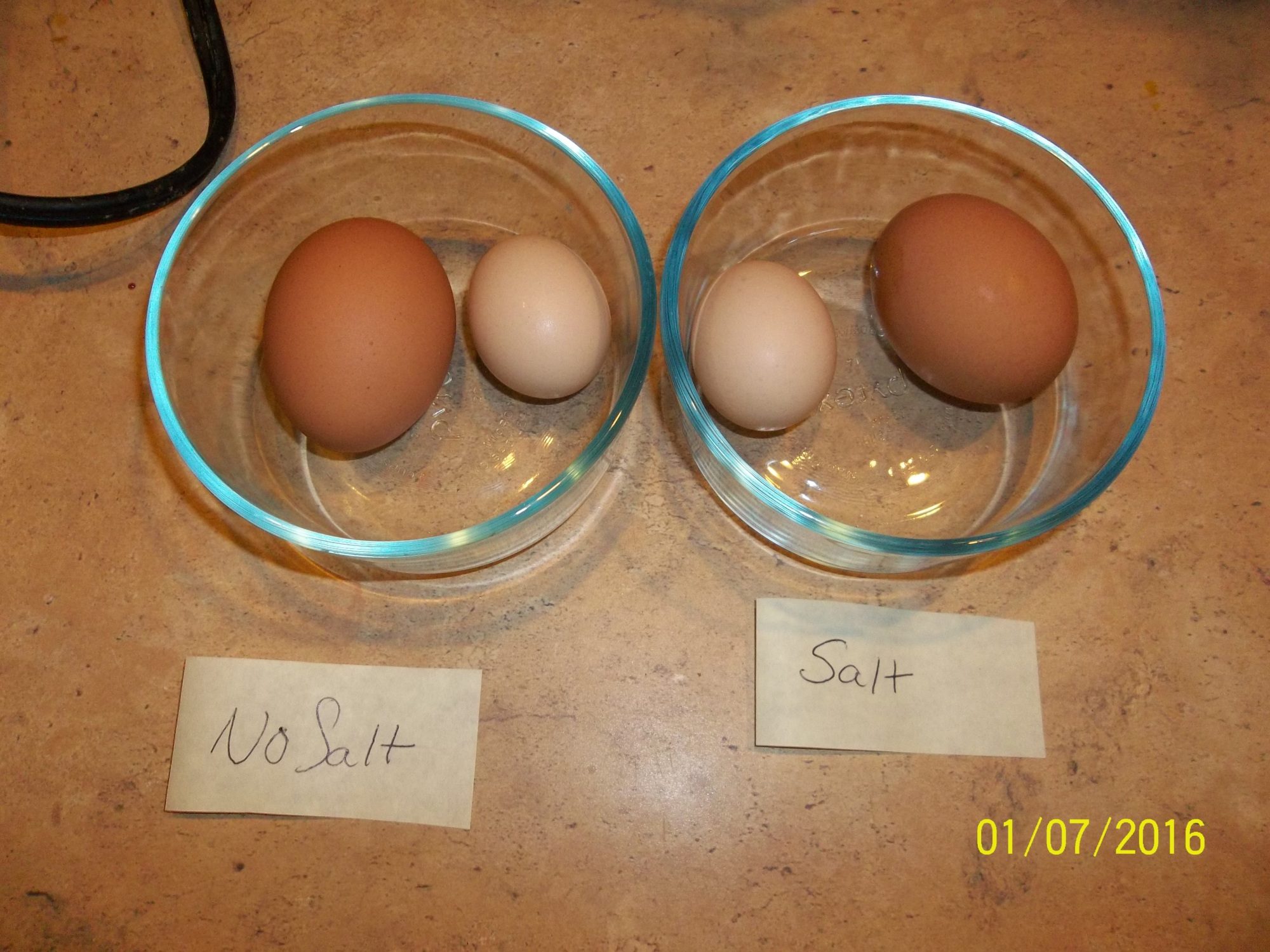 whats the salt vs no salt experiment? (adding during cooking im guessing)The eggs are quite small to fit the size of the bird.