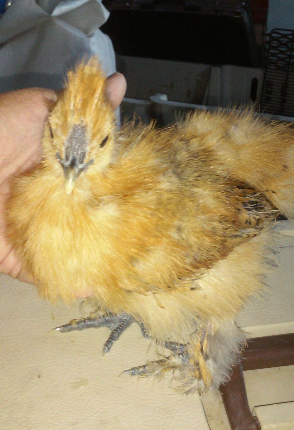 Any guesses about gender on these 3 cuties? Also, what color would they be considered? I'm posting 2 pics of my dark silkie cause I am really liking the color. The dark one is 9 weeks and the others are 7 weeks