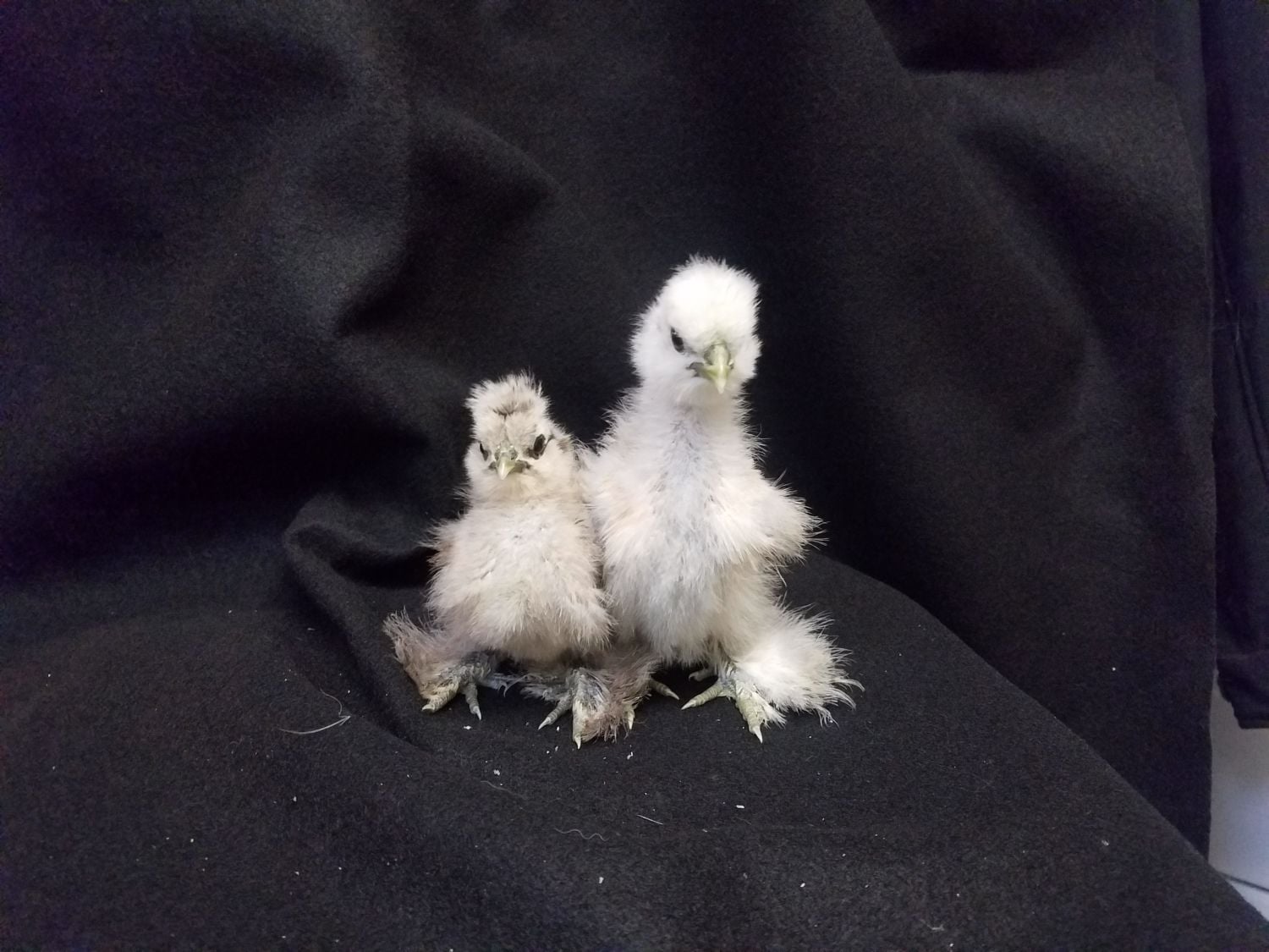 That IS a sizeable difference! How lucky you have these genetics going through your stock! Odd that there wasn't more than one significantly larger chick from the breeding pair? Another interesting experiment is to see if the large chick turns out a boy or if females come out of the genetics too? What size were the eggs that hatched -- did some happen to be larger than others too? I notice one of my Silkies can lay various sizes of eggs while the other is always a consistent egg size. Must be somewhere in your line of Silkies a large fowl was cross-bred to them generations ago and larger Silkies are just now starting to show up without losing the perfect Silkie standard. This isn't the breeding pair that had fused fifth toes, are they?