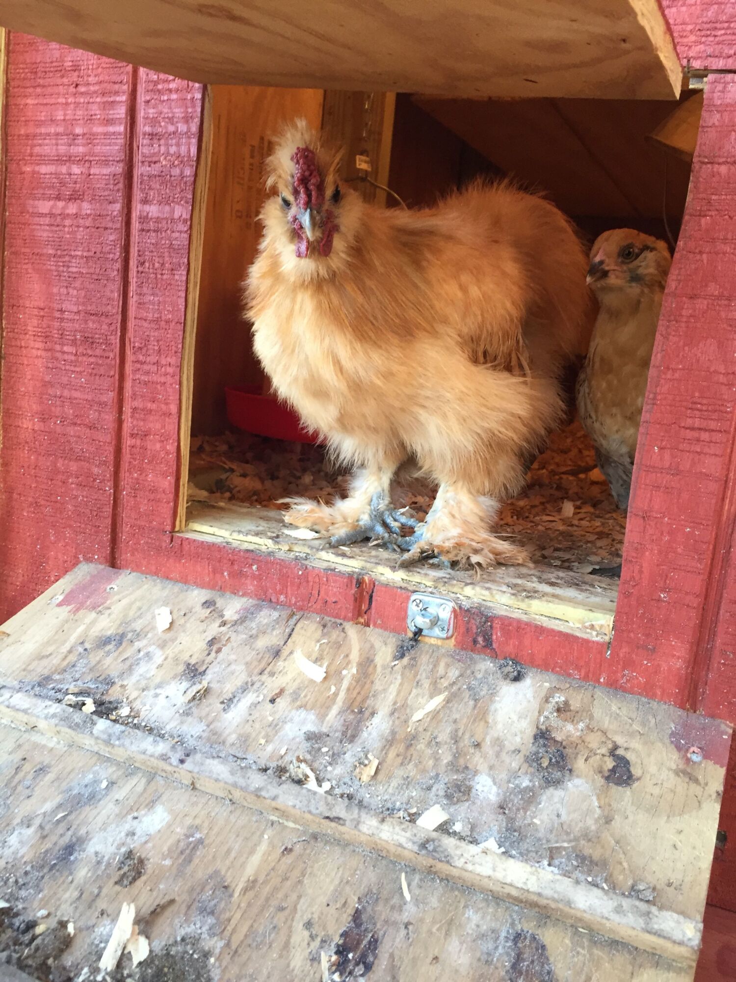 She has spent the day in a 3x3 foot run with water and layers pellets. Let her out about 4.20 when I got home and she ate some spinach and more layers.