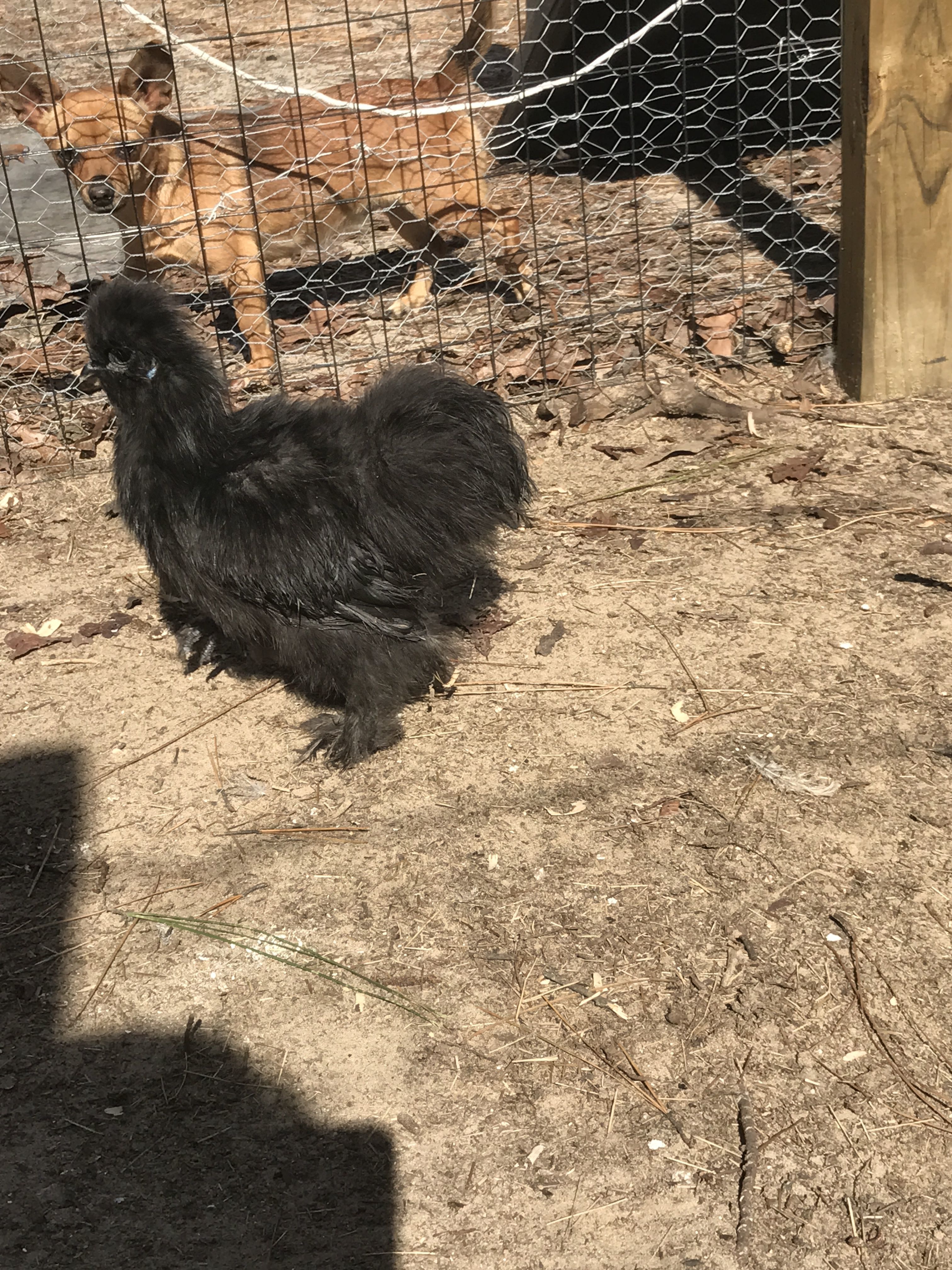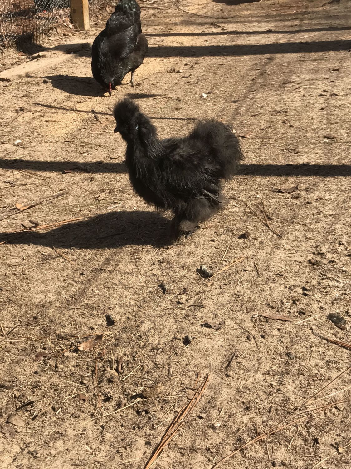 What do you guys think? 6 months next week. No clue if it's a pullet or cockerel. Hoping it's a pullet. His/her brother is white, and has long thick streamers coming from back if crest. This one has me so confused. If this one is a cockerel, then all 3 of my silkies are male