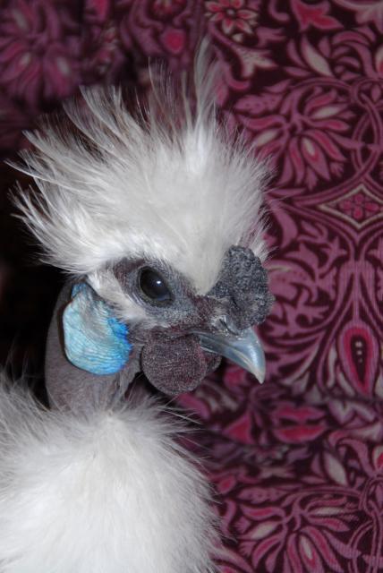 Here is a photo of my Showgirl rooster (Silkie and naked neck cross). The ear lobe is lighter in color than the rest of the blackish/slate colored skin so the result is a blue ear lobe. Both males and females can have blue ear lobes.