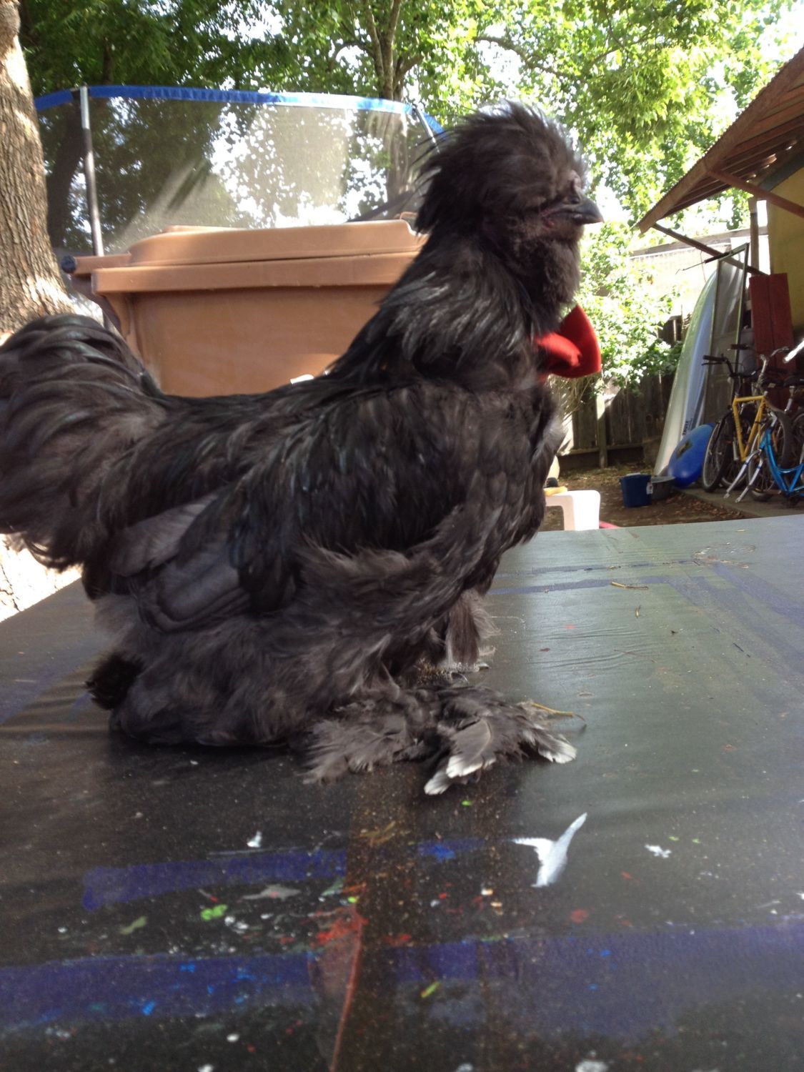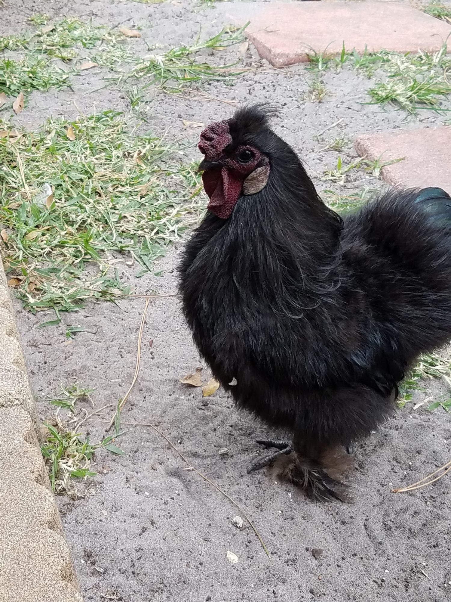 Good morning. This is my silkie rooster Ricky. At first I thought this white feather was just stuck to his foot. But it appears it is his feather. He is 7 months old. Does anyone know why he has the single white feather on his foot?