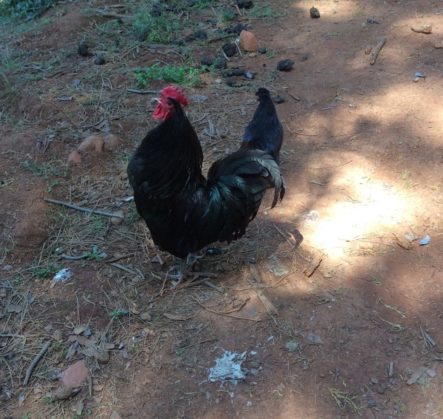 i picked up my fave hen, Ruffie, and placed her on his head for good measure.