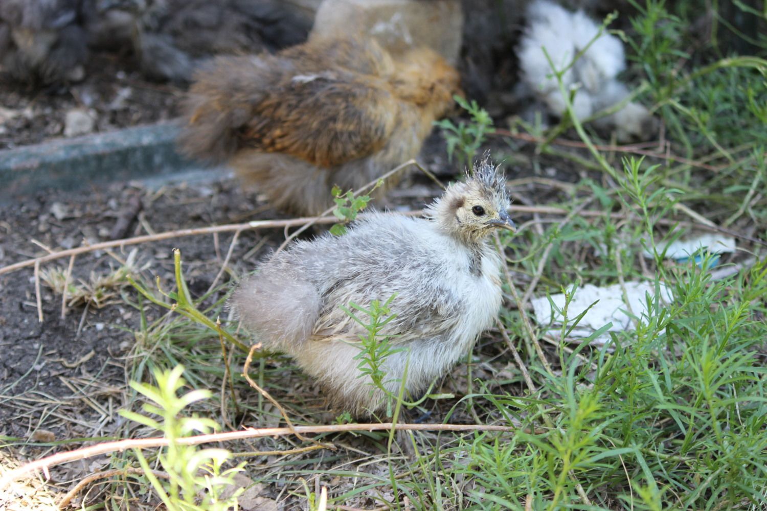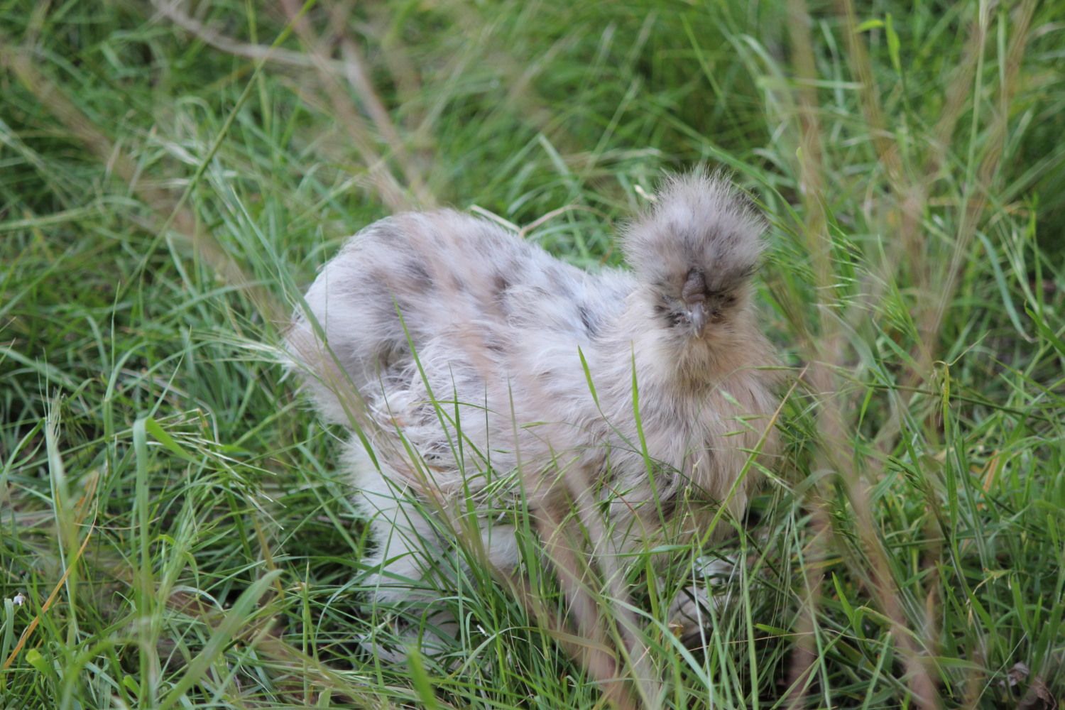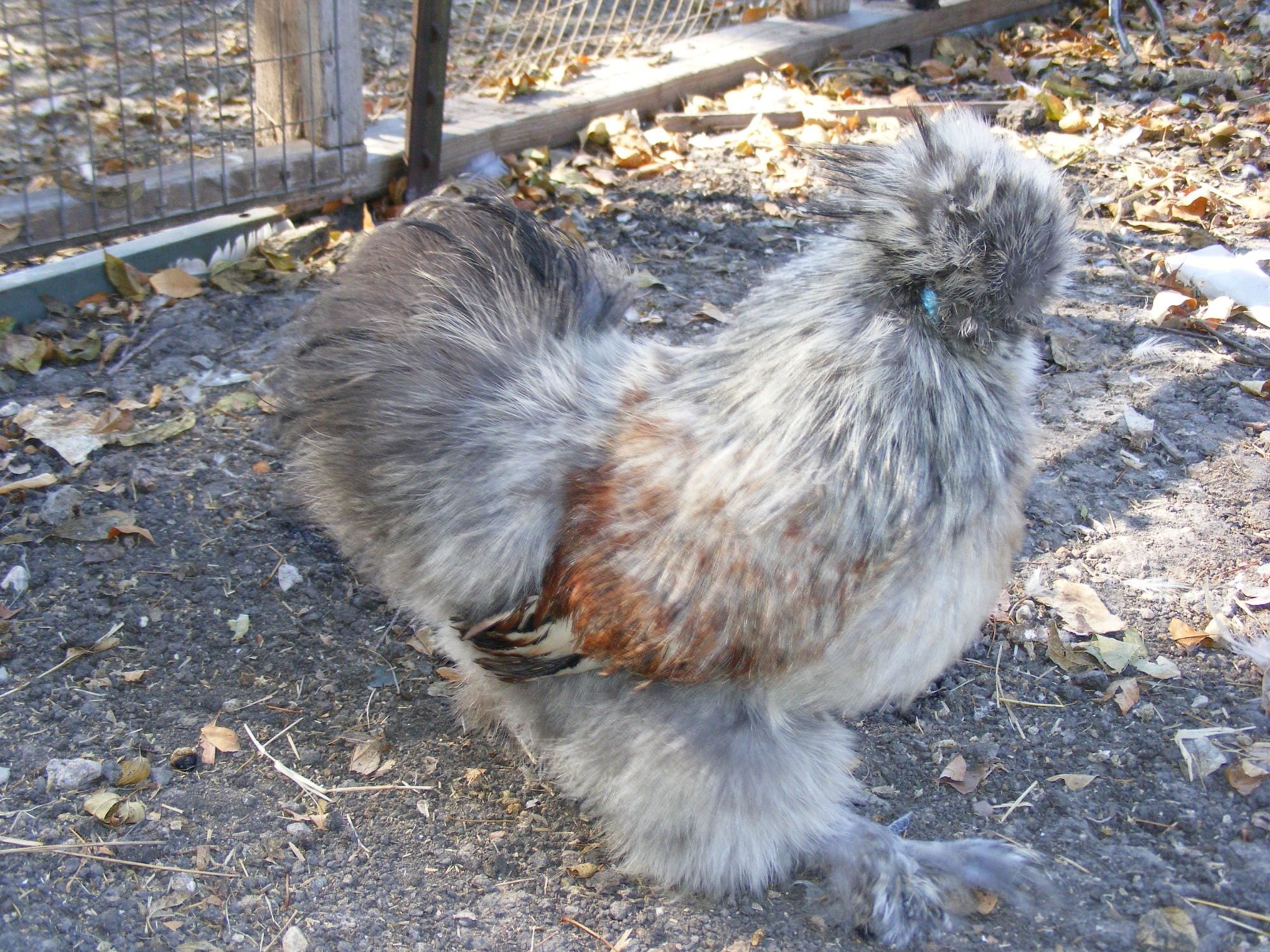 Daddy was recently killed in a possom attack, so I hope I do have some good quality babies from him. I do not know their backgrounds really - he came from a blue/splash pen and she was a rescue that had supposedly a splash daddy and a buff mother. That's why I thought the baby might be splash. I just don't grasp the chicken genetics, because the Arabian gray genetics keep getting in there muddling everything up.I think he was very typey and had an extreme crest for a rooster - she is lacking in the crest a bit - but both have very nice round fluffy butts and excellent feet feathering. She doesn't have any of the red coloring, just nice and dusty from a dirt bath.![]()
