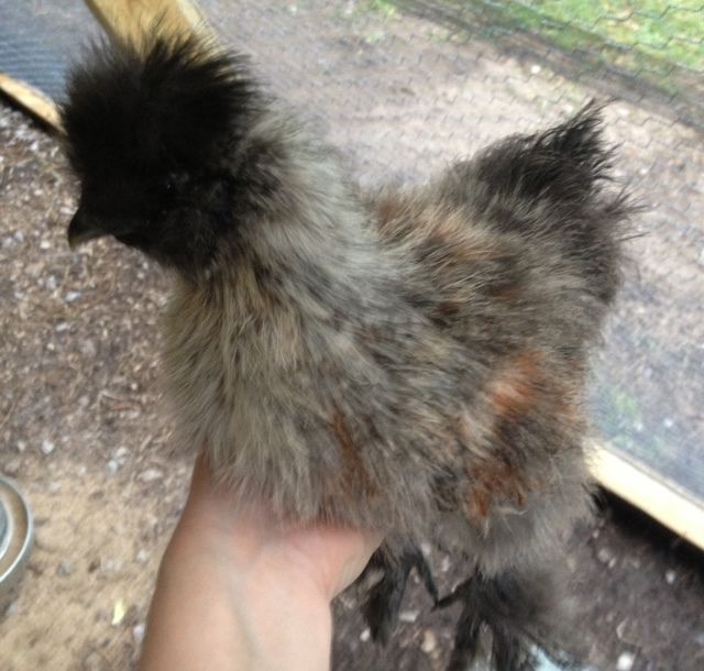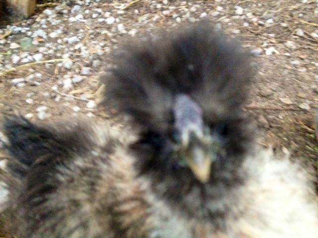 What a cutie! Hard to tell if it's a roo or Pullet, when do silkies start crowing?? I took a few new pics of Scootalu today because more orange is showing through. I will attempt to post them (I'm on my phone).