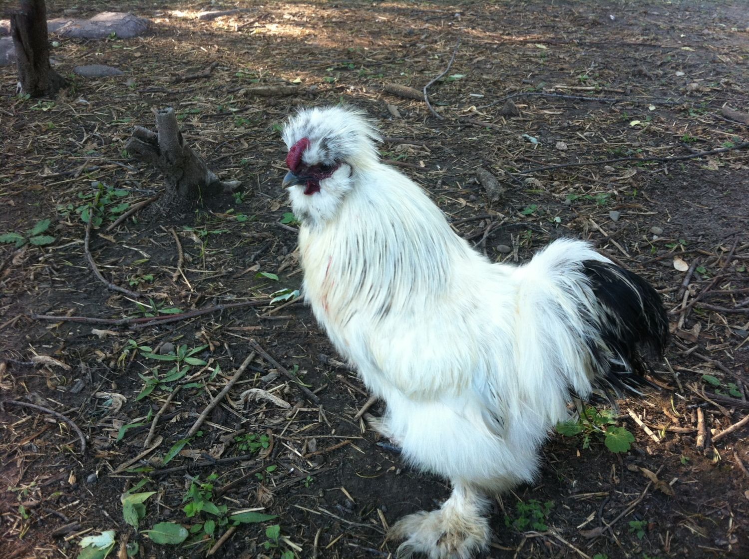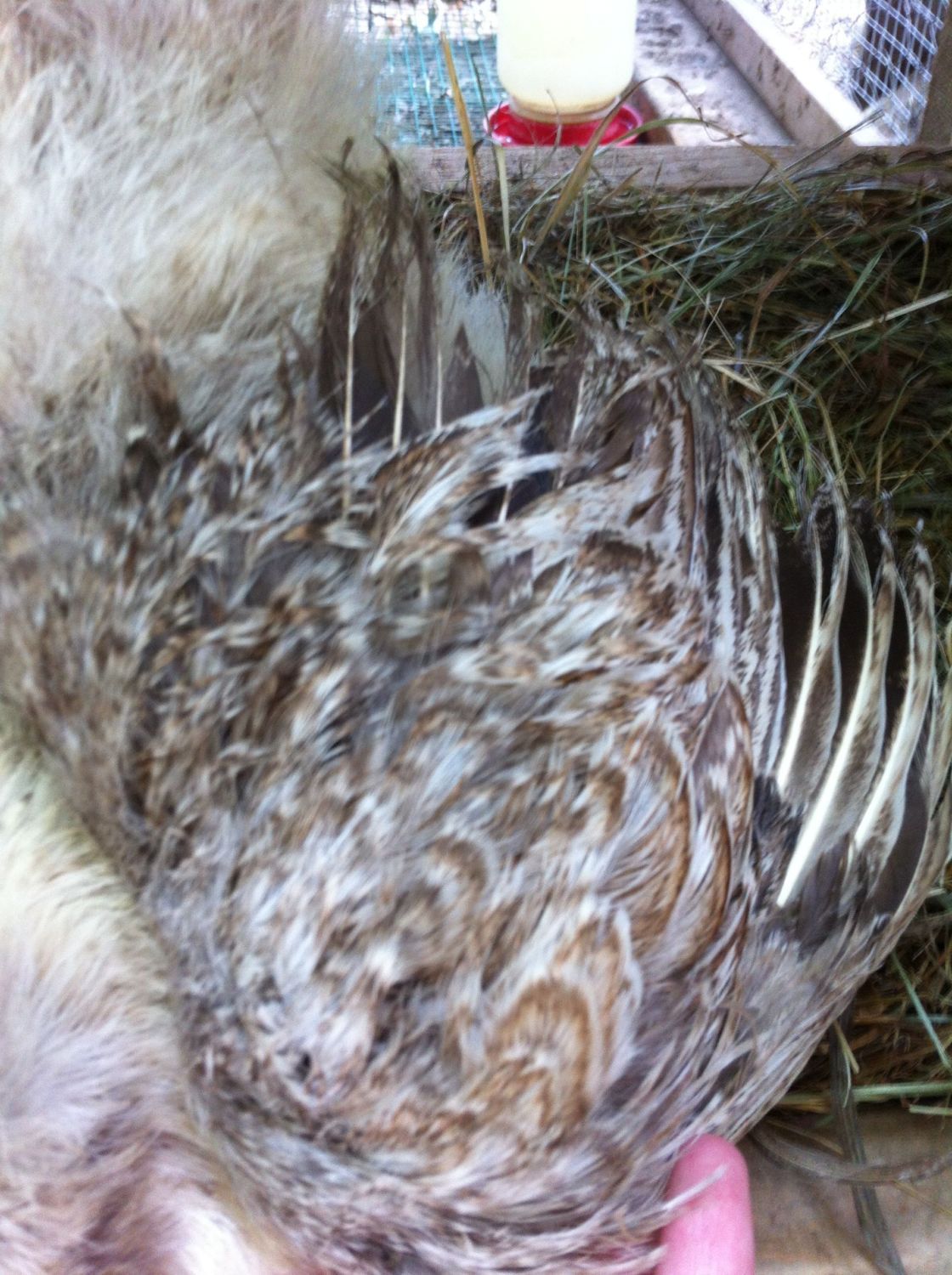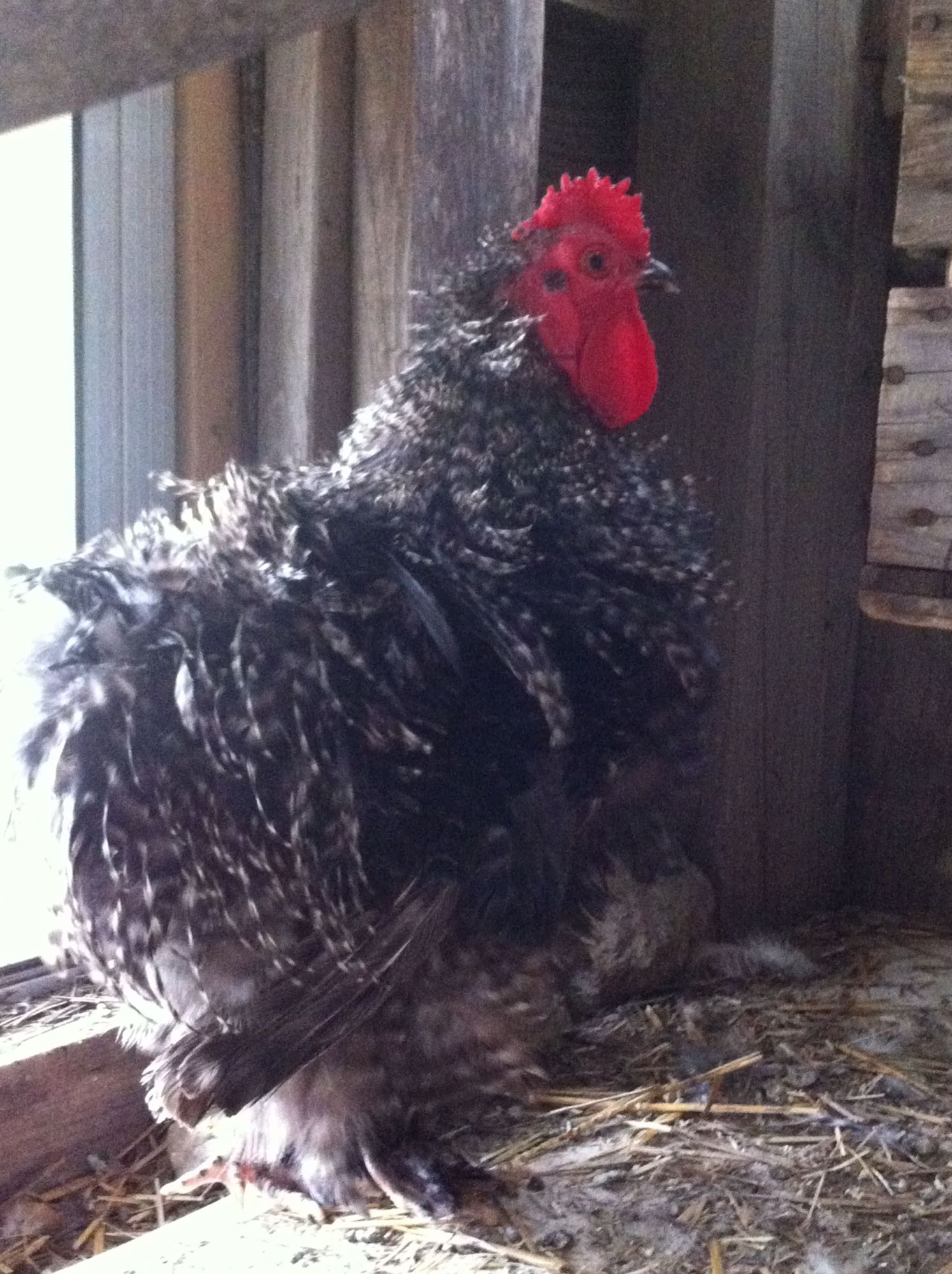 My plan is to breed my partridge roo #1 AND cuckoo roo #2 with my cuckoo hen #3 and a couple white hens I have, and see what happens. Then there is #4...I am not sure what is going on with this one but I think has cuckoo in there, maybe a grey cuckoo. It came from the same place as the two cuckoo. It has black skin and a single comb