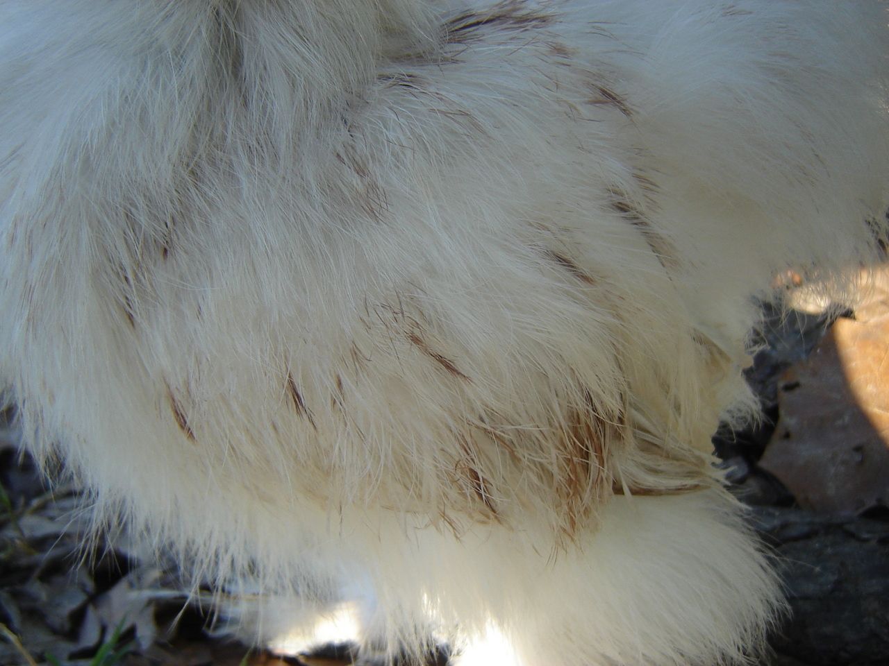 She has always been (since I got her at 4-6 weeks old) a Lavender color all over (or very light Blue..I've never seen a Lavender Silkie in real life) with a tinge of Tan/Buff color on like the tips of her feathers, sort've. Her crest and neck is also much darker than the rest of her.