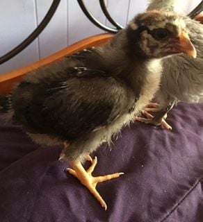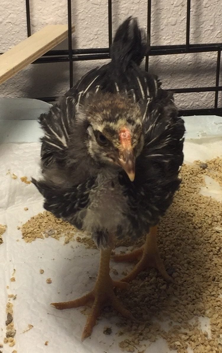 I have a Silver Laced Wyandotte, named Wiggles, which is suppose to be a pullet. "She" is almost 5 weeks and has changed a little since the pictures I posted but I'll post those pictures come Tuesday 1/2/17. First off, Wiggles comb looks like it's a rose but I can't tell if it's normal looking or does it look like the other 2 chicks were pecking at it. Wiggles feathers grew in fast as hopefully the pictures will demonstrate. She also started growing in tail feathers in as you can see by 2 weeks old.