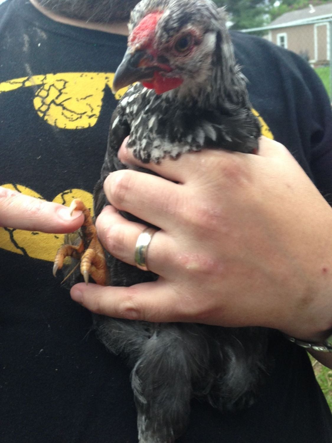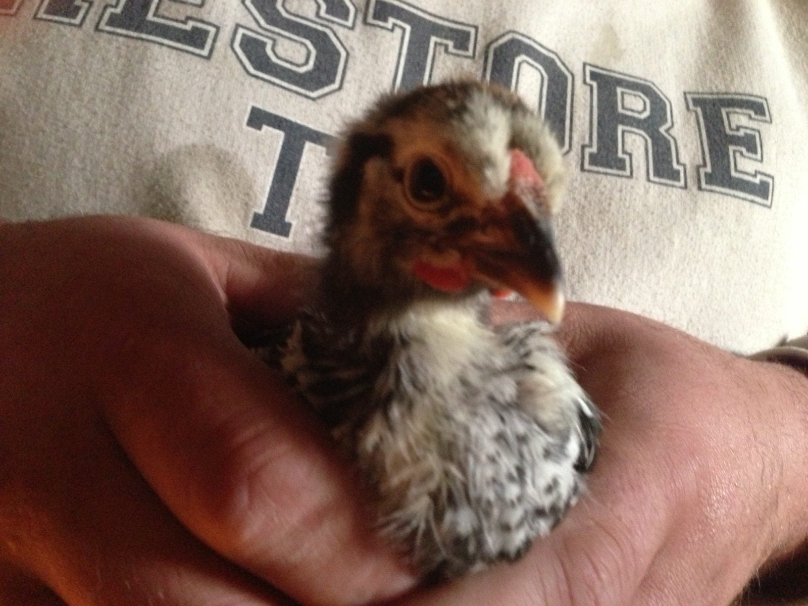 Okay.... I picked this one up 4/10. As for age, I'm not 100% sure on it, but I would day under 3 months? Marsala here hasn't been crowing at all, but I have noticed she has this queer curl to her tailfeathers now, and I'm beginning to wonder if my she isn't a he? I read somewhere roos tend to be more leggy? Well.. we definitely have LEGS. I'll try to get better pics tomorrow. Can almost see the tail curl. I would have to say pullet. She looks like the one I have. I gave away a roo slw to my friend and I knew it was a roo because of the waddles and comb were RED at 6 weeks. Last weekAround April 27