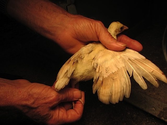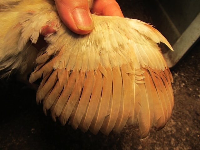 Your post#17 above,,In the colors of IB,Bronze,Purple,Midnight,and Opal b/s chicks (all yellow when hatched) the males will start to show much more color changes than hens will in all the above colors,Since the adult B/S hen is mostly white when an adult they will not change color much Both males and females has the rusty colored outer flight feathers in the above colors.So to distinguish b/s males in these colors you must look on the back and covert wing feathers gaining more pigment as they get older.At 3-4 weeks of age you would notice a big diffrence between a future hen and a future male b/s pattern.