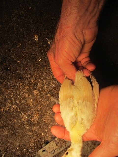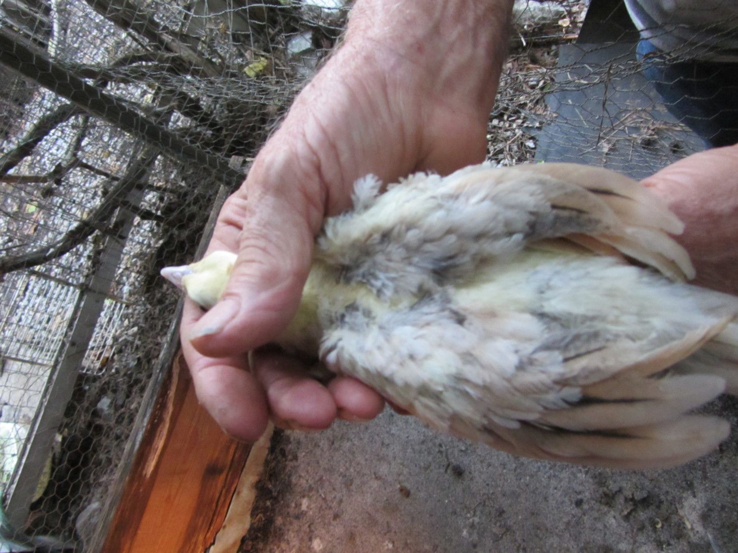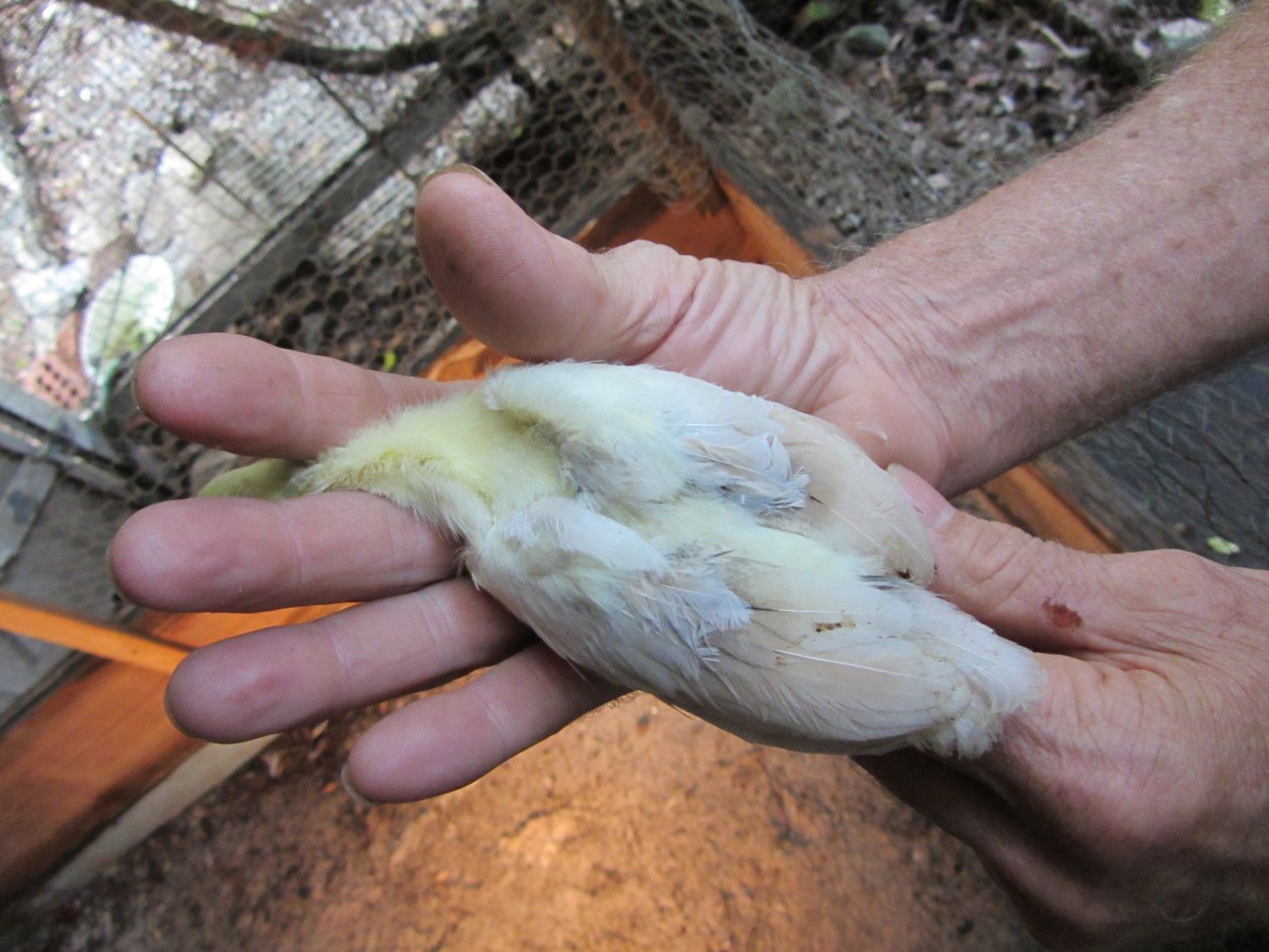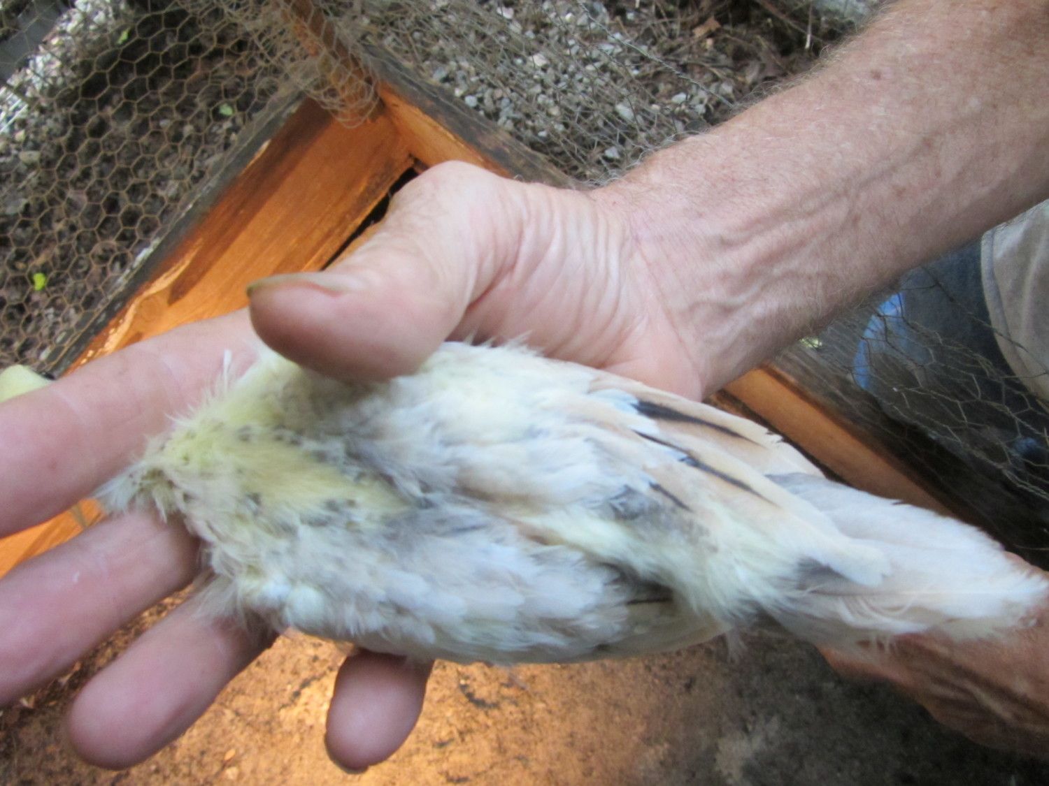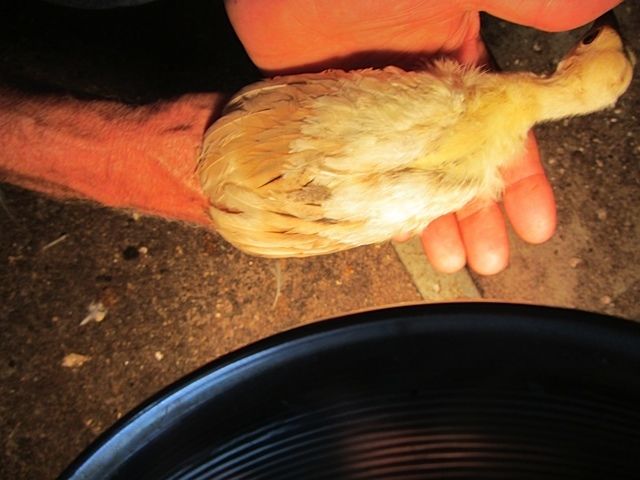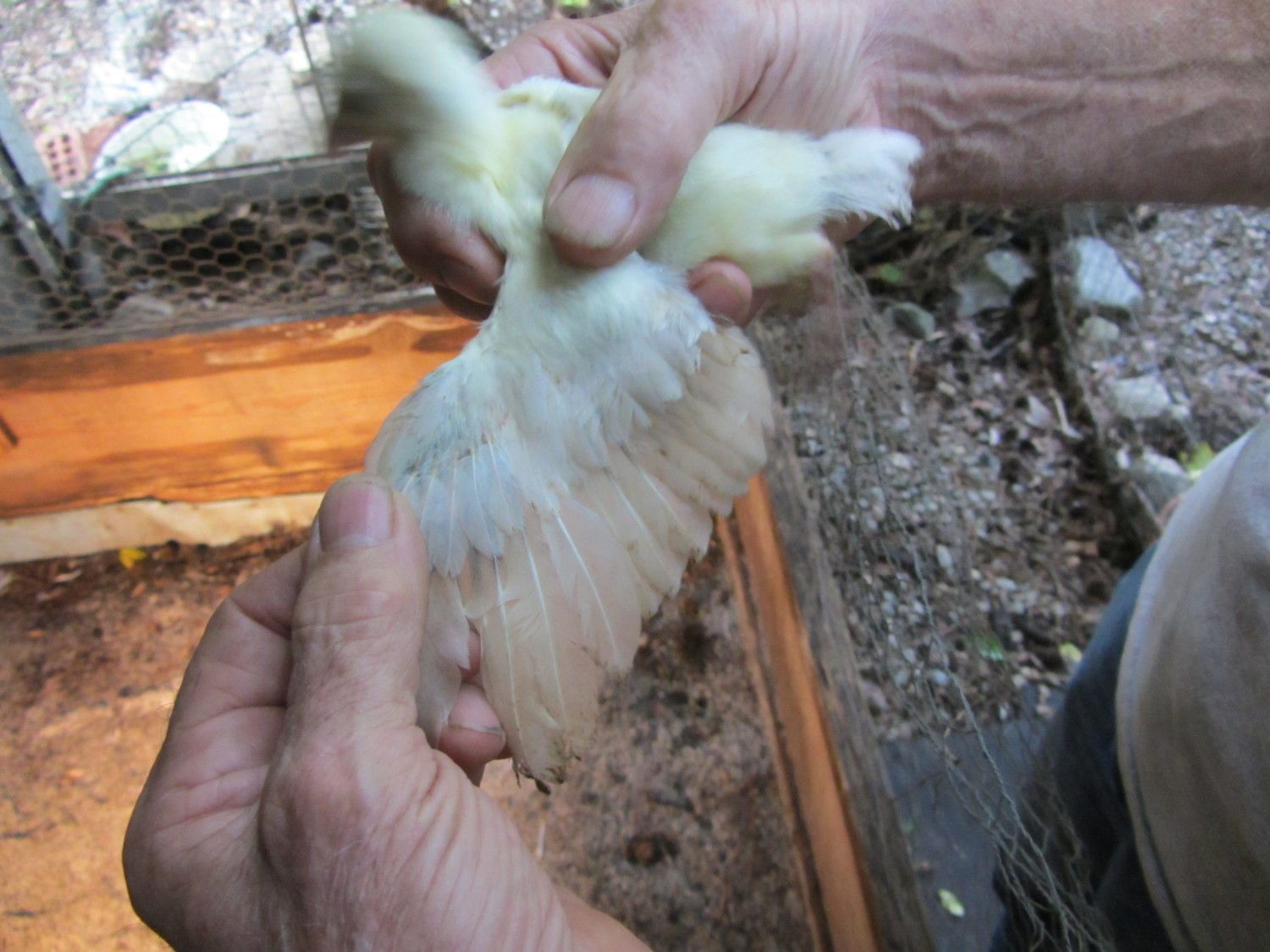 BUT,in BSSP chicks,only adult hens has this rusty colored outer flight feather color,,NOT THE MALES,so it only makes sense that BSSP peachicks showing a change in these outer flight feathers would become hens,,since my adult BSSP males outer flight feathers are all white with maybe a solid black feather in the mix only.I have 2 pied males,and neither has rust color anywhere on them.This is how I hope I am correct on sexing my bssp chicks.And I'm hoping that from what I can see in your pics provides reasons for saying they will become hens.I've posted some pics of b/s males vs.b/s hens both the same age and some at 3 wks of age in previous threads.Locate those and see the marked diffrence in much more pigment in the future males and how little change is noted in the future hens.