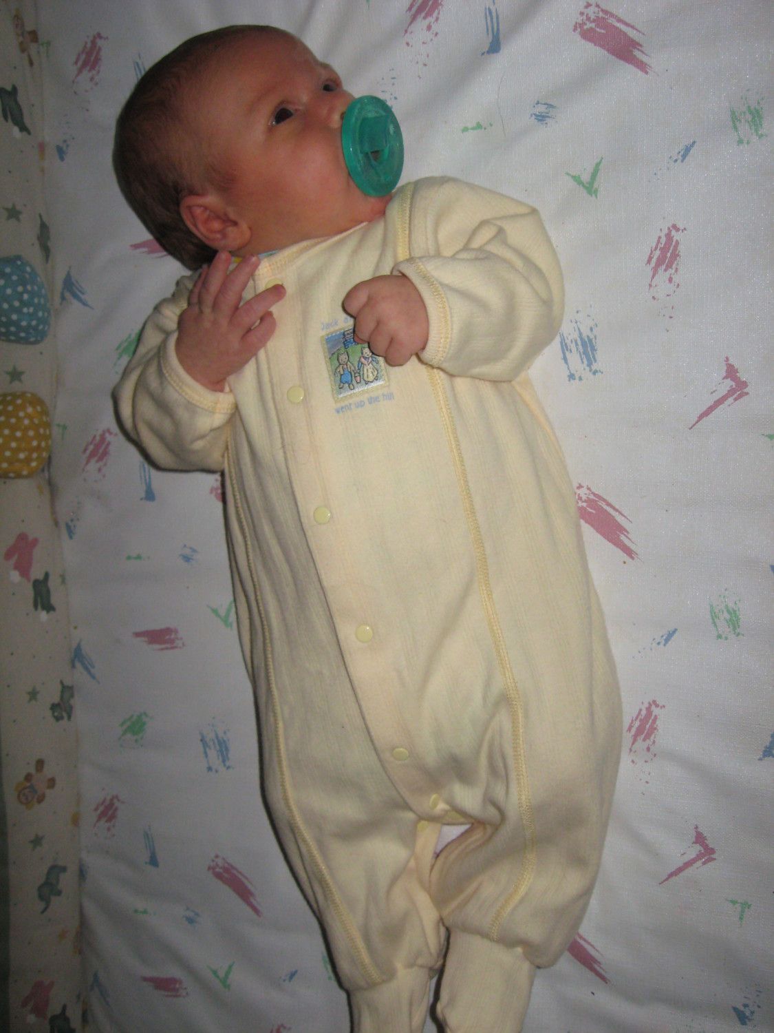 She's 'crawling' already (I put her in her crib one way, come back later and she's facing the foot end!) She rolled over on belly to back in a fit of rage.. She's pushing her legs when I hold her up with her feet on the ground. I am in SOOOO much trouble! Got a few grins out of her and she's staring at everything very intently. She was 10 lbs 4oz at her checkup last week.