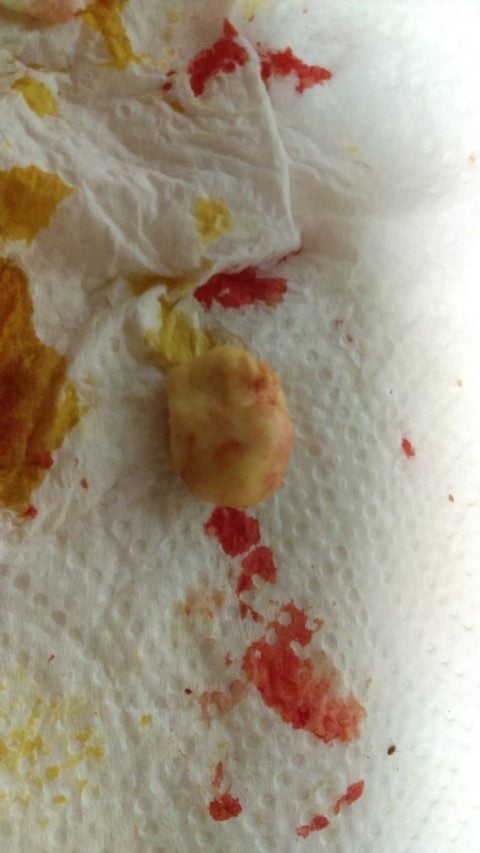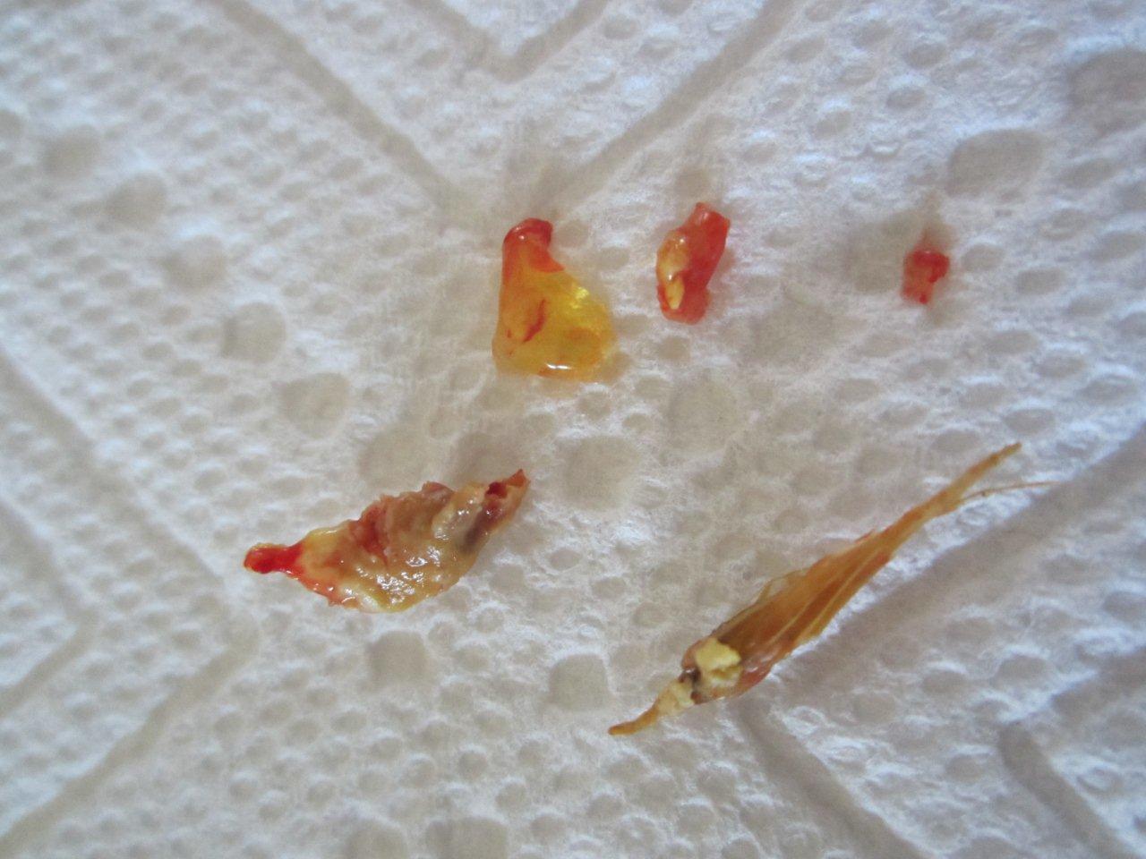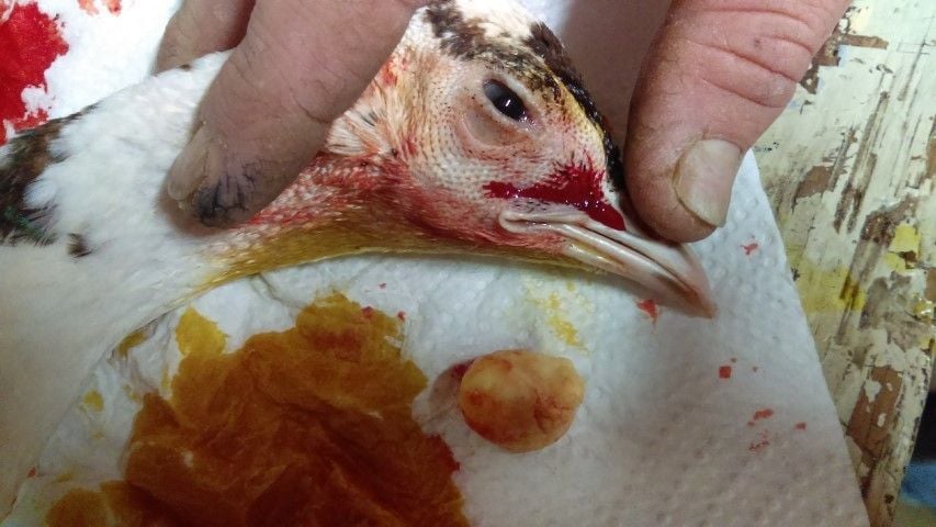 I'll start with mine... Last month I found a rooster with a nasty infected eye, but no other signs of respiratory infection, so I removed the pus as best as I could and set him free. Several days later the pus was back, so I did it again, but this time I was more aggressive and manged to get this out of his choanal slit: