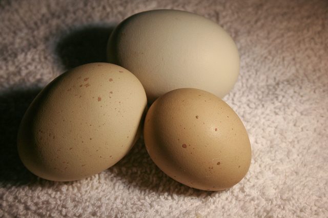 Good news! One of my younger pullets started laying yesterday. After several visits to the nest box she left this pretty little green egg with brown speckles. (the one in front) I will gladly include this egg and any more like it in this auction but would like the buyer to give me feed back on fertility. We have seen mating but, who knows? If you do not want the new pullet eggs just let me know. I suppose I could twist my own arm and incubate them myself.