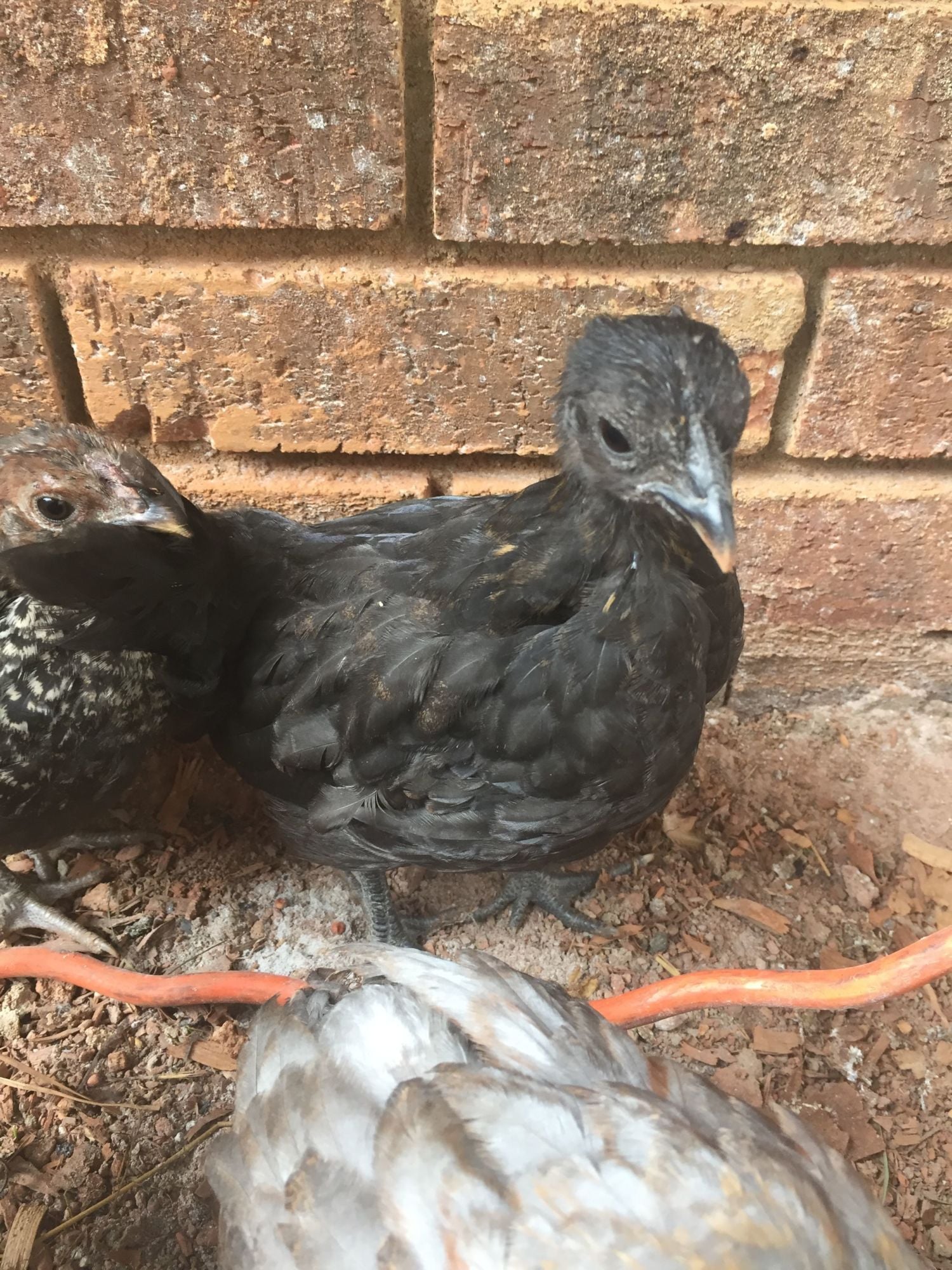 Pullet, possible a Silkie mix.
