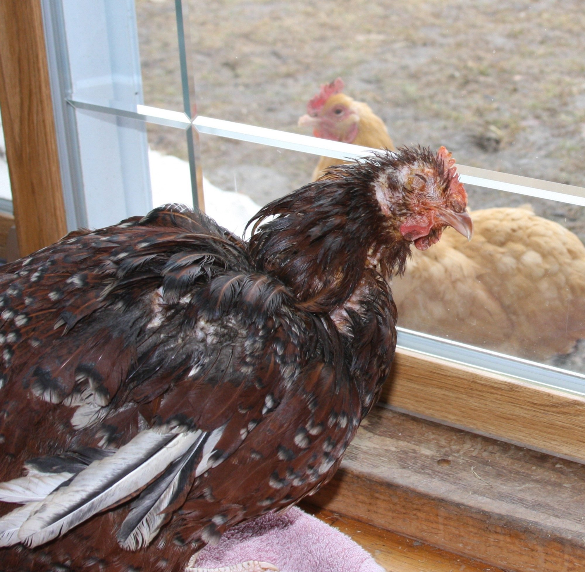 What sort of disease could cause skin leisions like this? She is being treated for an inner ear infection, but the leisions are eluding me when I try to look up what it might be. She has been treated for lice and no critters can be found now. She constantly picks at herself and pulls out her feathers. Her leisions are very sore to her. I have been trying to rub some bag balm on them, but it seems painful to her. Any thoughts are much appreciated.