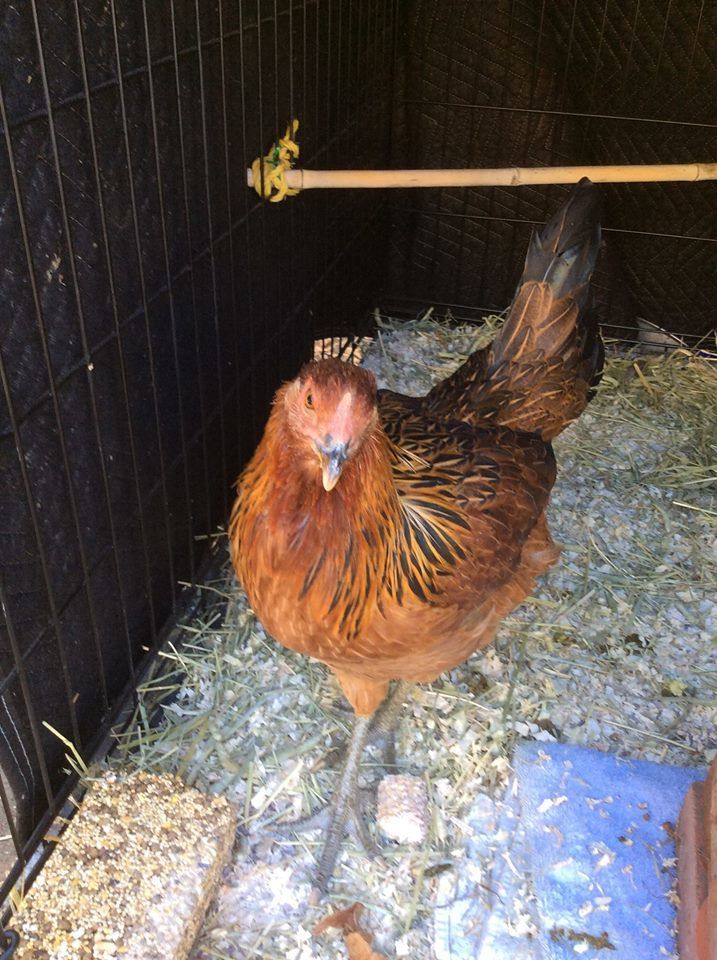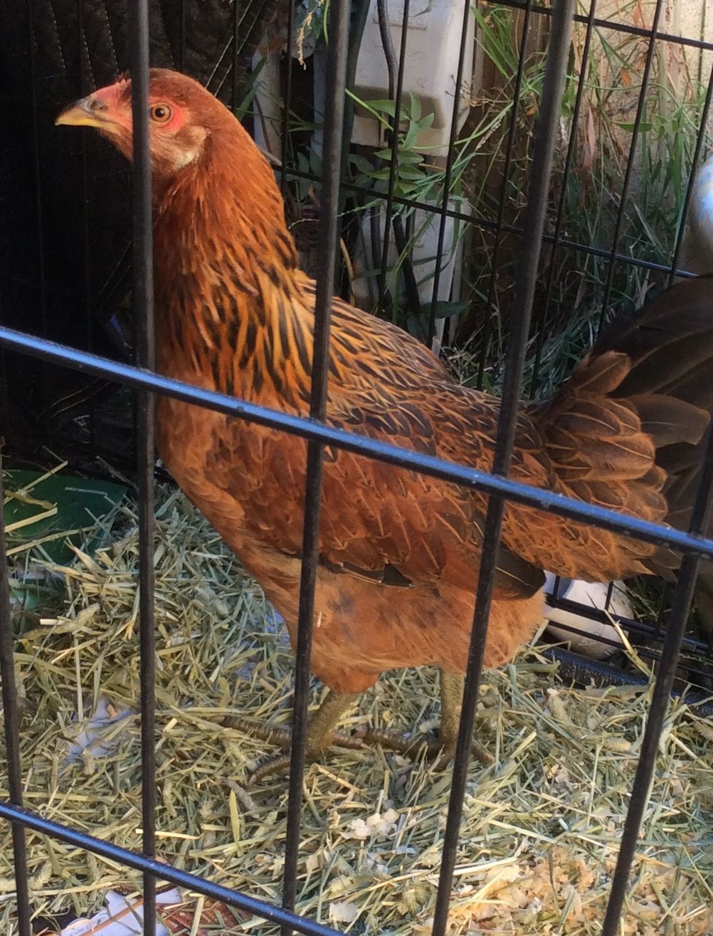 Be careful with her in that dog crate during the night. We had a chicken in one, up against the house, with a box inside. Something got her during the night and pulled her apart right through the bars. We felt terrible!!