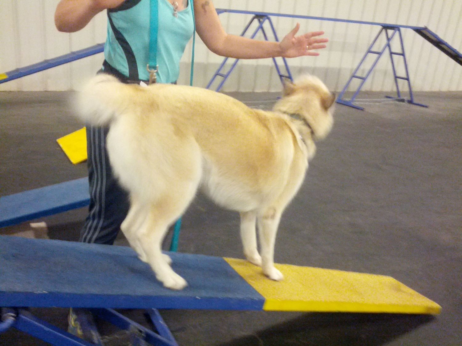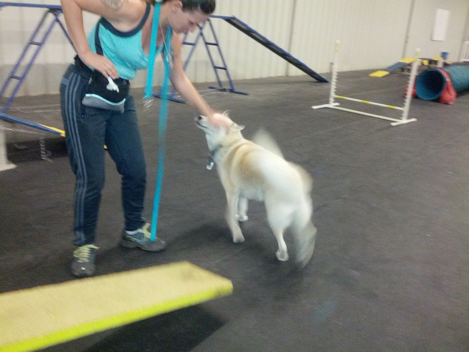 The family had to go to meet the teacher, so I took Fiona to the training facility to hang out and did work Fiona in 1 1/2 classes until they showed up and then let the hubby work with her. Our trainer gave them some tips, advice, and his read of the dog, as well as supervising the introduction of the baby. Fiona licked the baby's hand. They will go back to class this Saturday since they missed half of class last night.