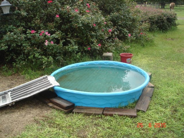 Amen 72elizabeth, that ramp is top of the line, and those non slip abrasive strips 'will' stay adhered to that aluminum, (unlike the material the pools are made from). The water appears to be very clean also, I'm assuming that you lift and empty it on occasion, if you run a spare section of hose into the pool onto the bottom in a half circle, you can clear the water each day or every other day by running the water for about 7 or 8 minutes. You can use a quick disconnect hose fitting on this line, or a 'Y' type splitter at the spigot, direct the flow clockwise and as the pool clears, the over flow should irrigate your rose garden. In the past I've found that if you lift those pools to empty them they will start to crack and leak, Thank You again for the pictures.![]()