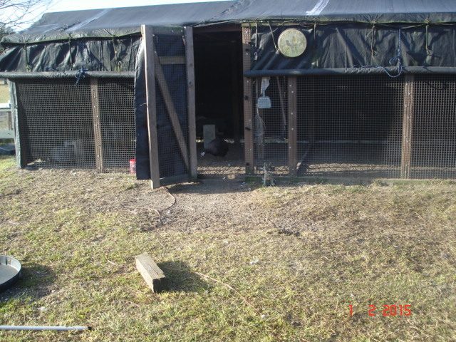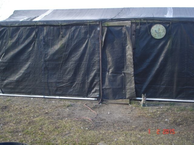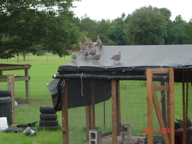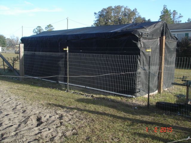 Here's the guinea coop I built. It's a 20x20x8ft high. I put down the fabric when it's very cold