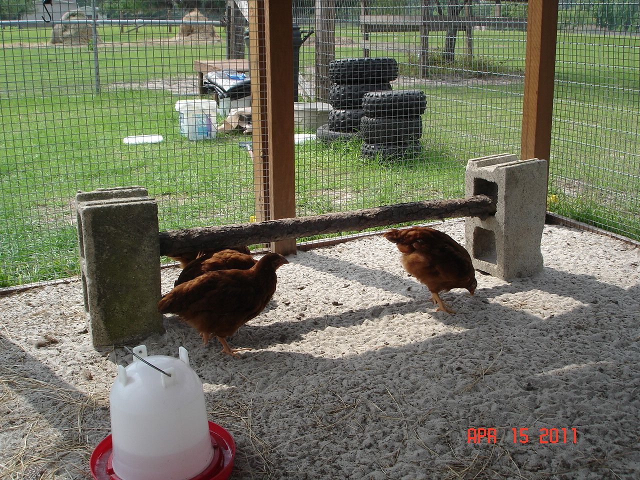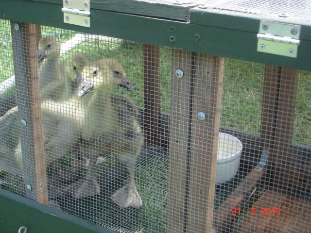 The goslings in the chicken tractor.