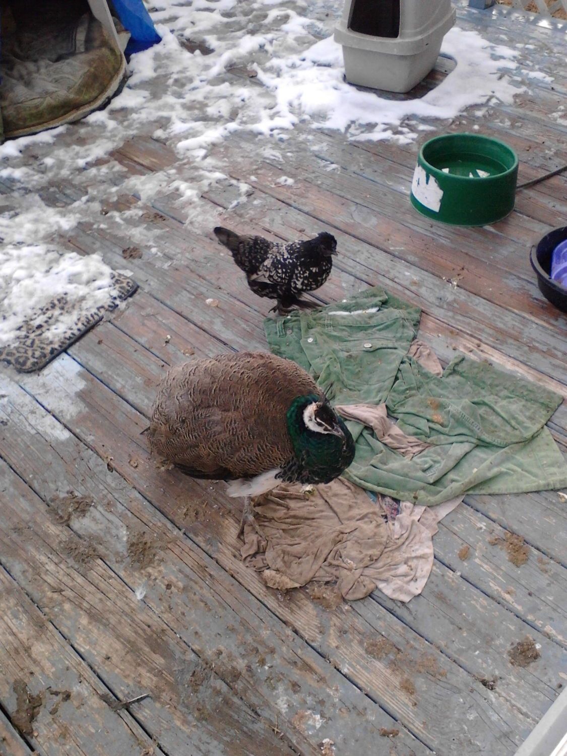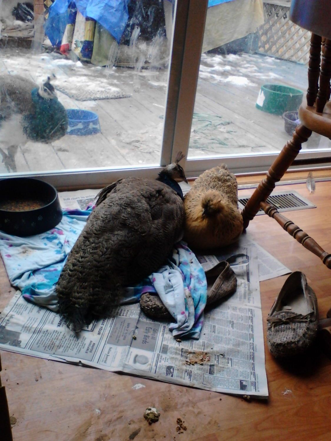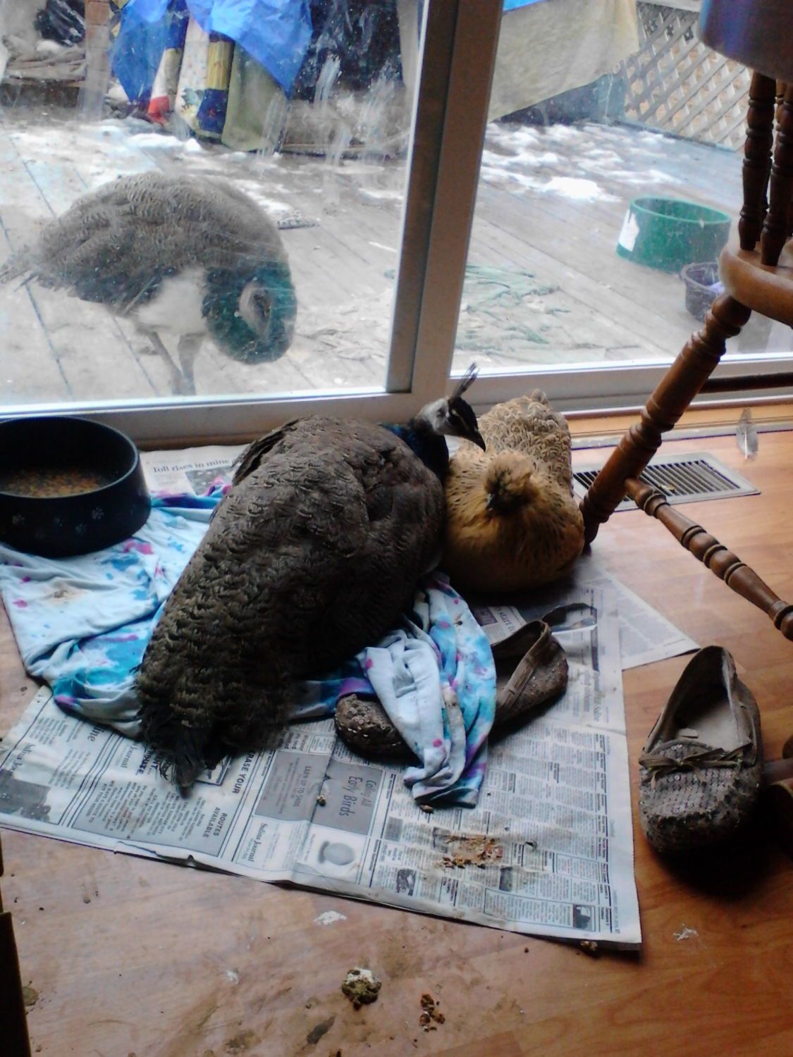 So last night I taped him up with foam again, it seems much easier on him, and brought in his chicken mom, Gimpy. He is much much happier. I told him we just couldn't bring in Question, that bird is gonna be a terror!