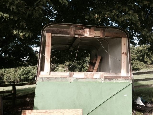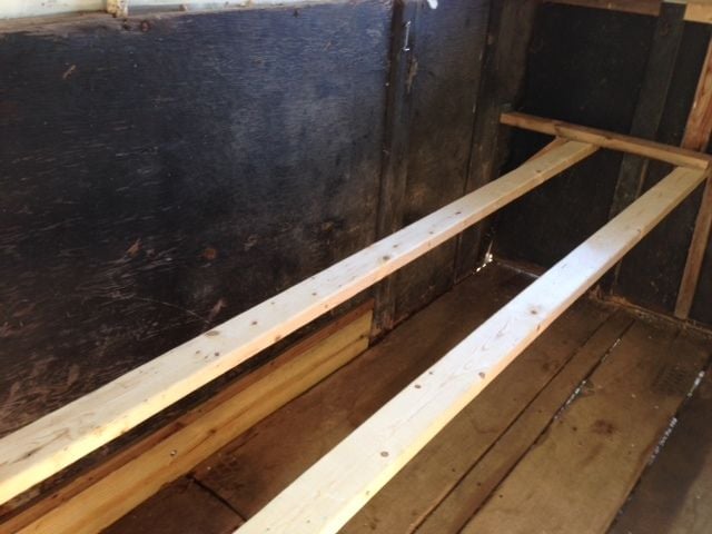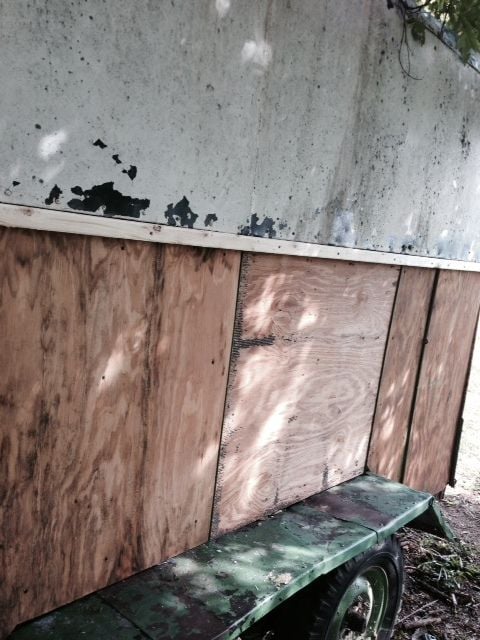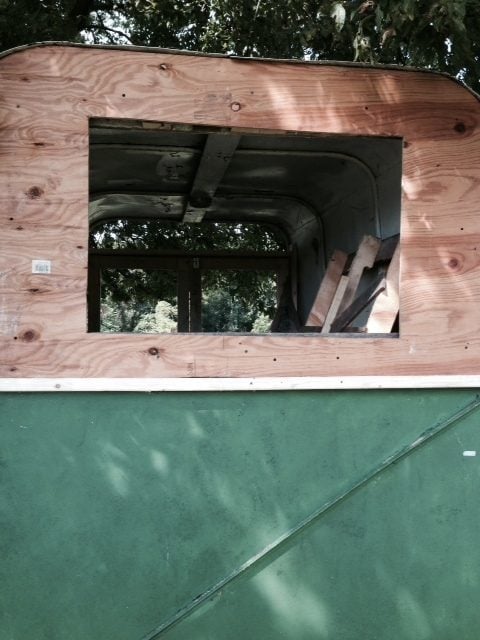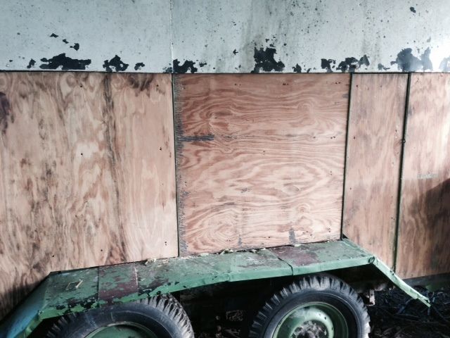 Removed the front board (new board has been tacked up, however need to cut the opening for the window that will be going here):