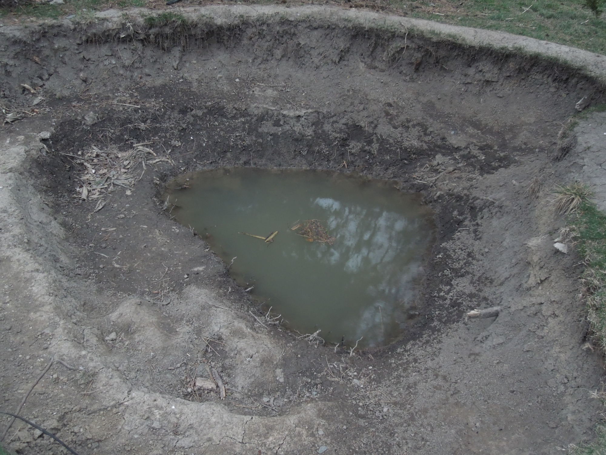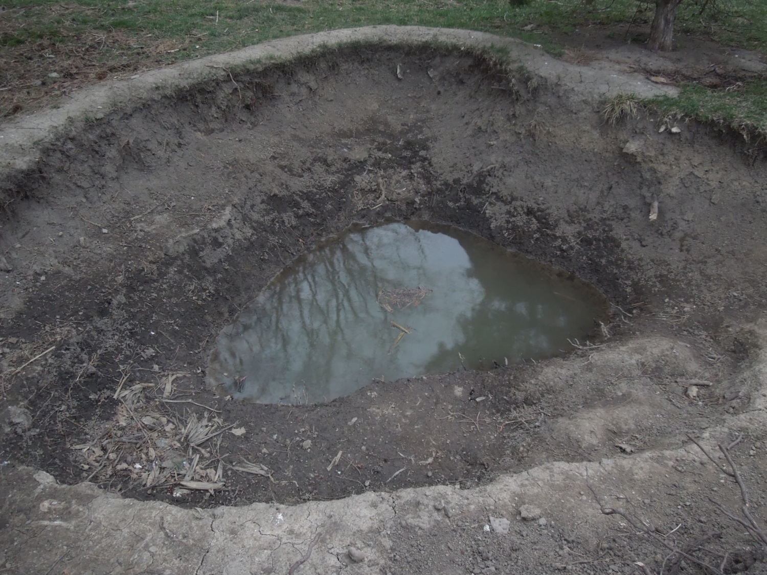 There is clay at the deepest part. About a foot of rain has collected. I bucketed the water out TWICE...and both times I returned the next day to find all the water had returned...without any rain.
