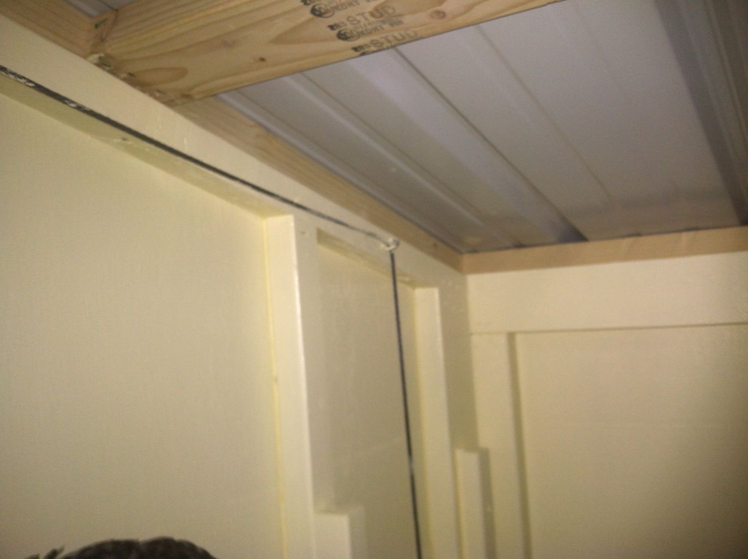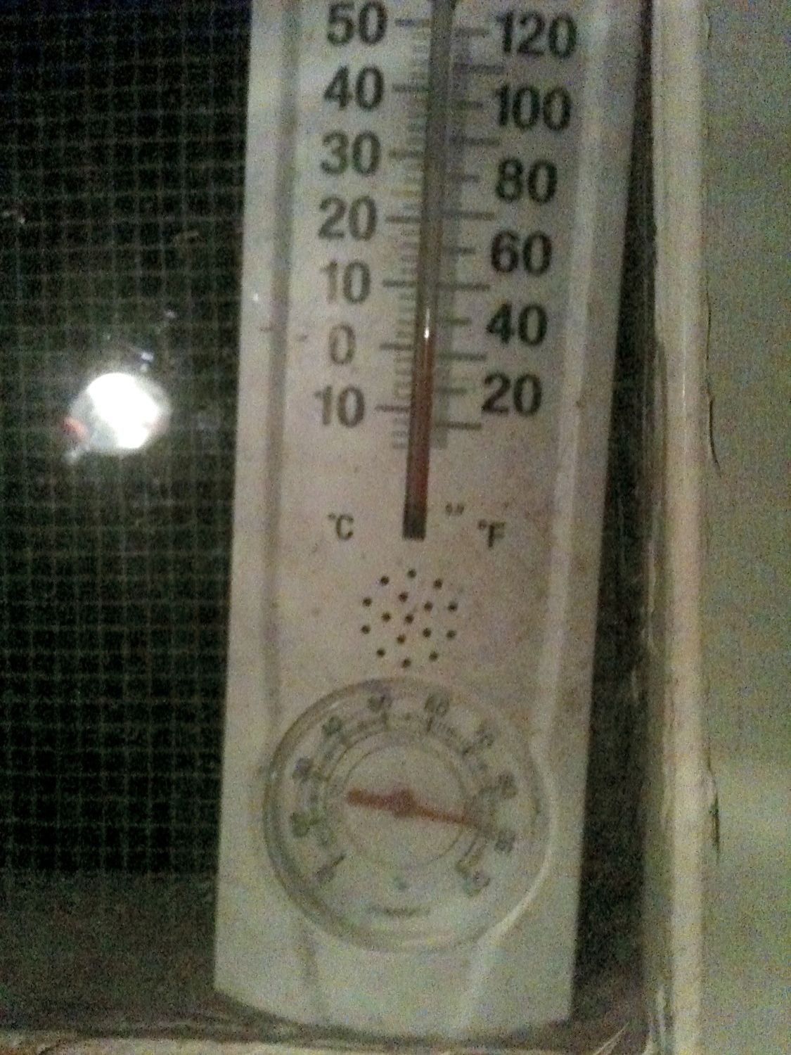 When I went out before dawn as usual to let the ladies out this morning, I noticed in the far back left corner of the inside of the coop, on the metal roof, there was a small ammount of frost forming around where the lights exit to the outside of the coop through the corrugated roof gaps.