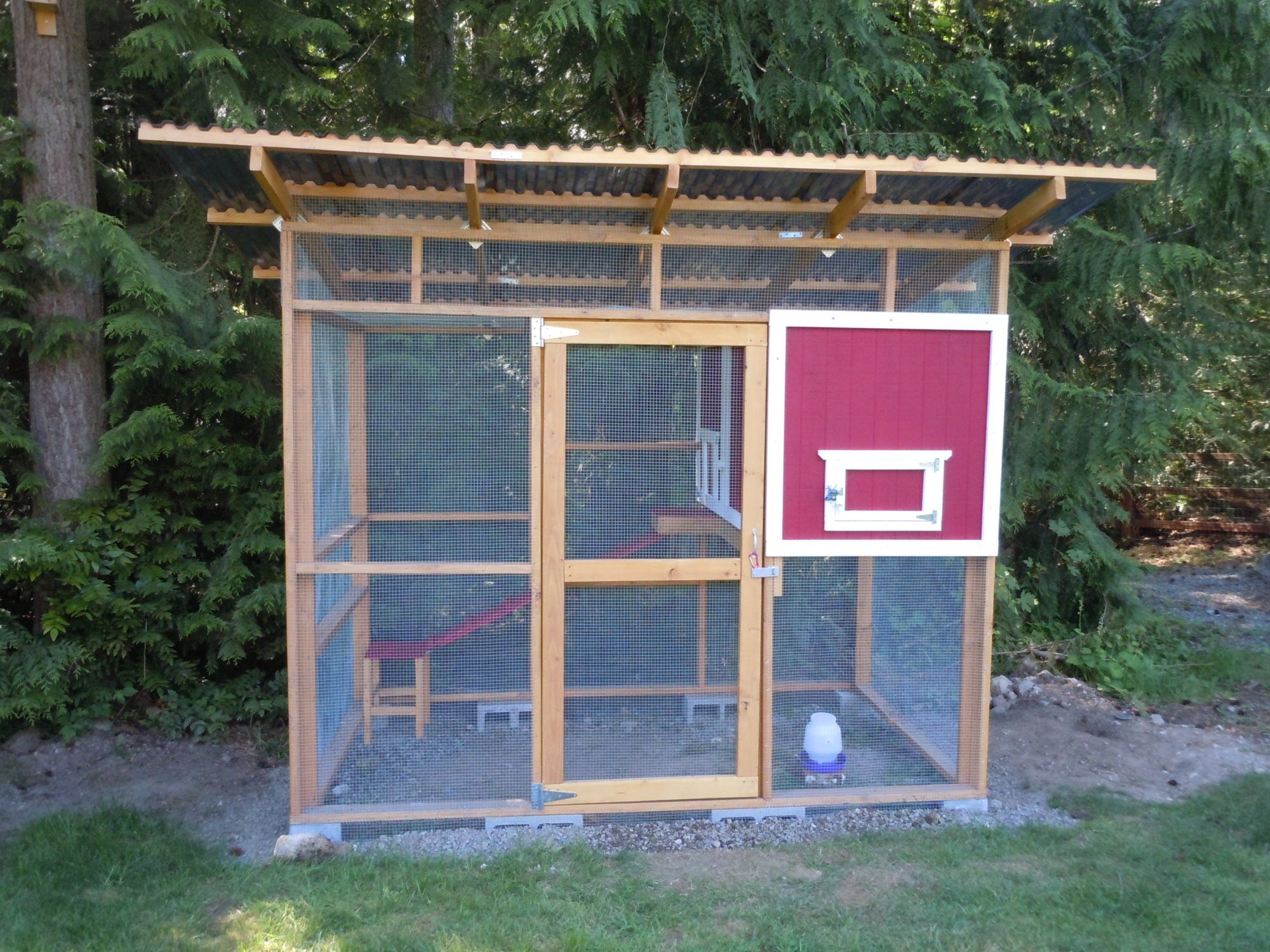 Also, I am wondering about how much of the outside run to cover, and with what?... plastic, wood, clear roofing material? I found polycarbonate sun porch roofing in a 12ft x 28" sheet that would cover the back side where the rain flows off the roof, and some gets into the run when it splashes on the rocks.