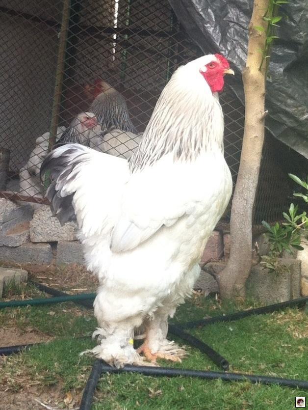 Hard to judge type from this picture. I assume he doesn't stand streched up like that all the time. Colour isn't very good at all. Head looks small & fine. Brahmas should have a large, broad skull. I get the feeling that he's probably smaller than he should be.