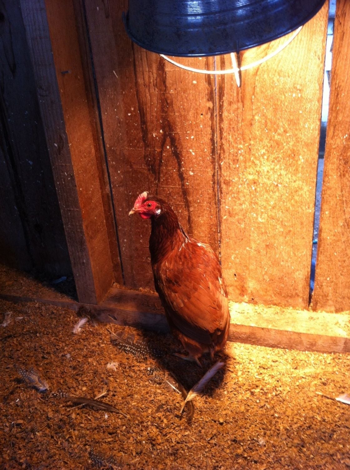 I got this small red hen in an assortment of chicks. I got them back in May. She is about 2/3 the size of my white leghorns that I got with her. Originally I though it was a bright red NH Red, but she hasn't grown. She doesn't have a tail either. I'm not sure if she's supposed to look that way or if the others pick at her as she never really grew a tail to begin with.