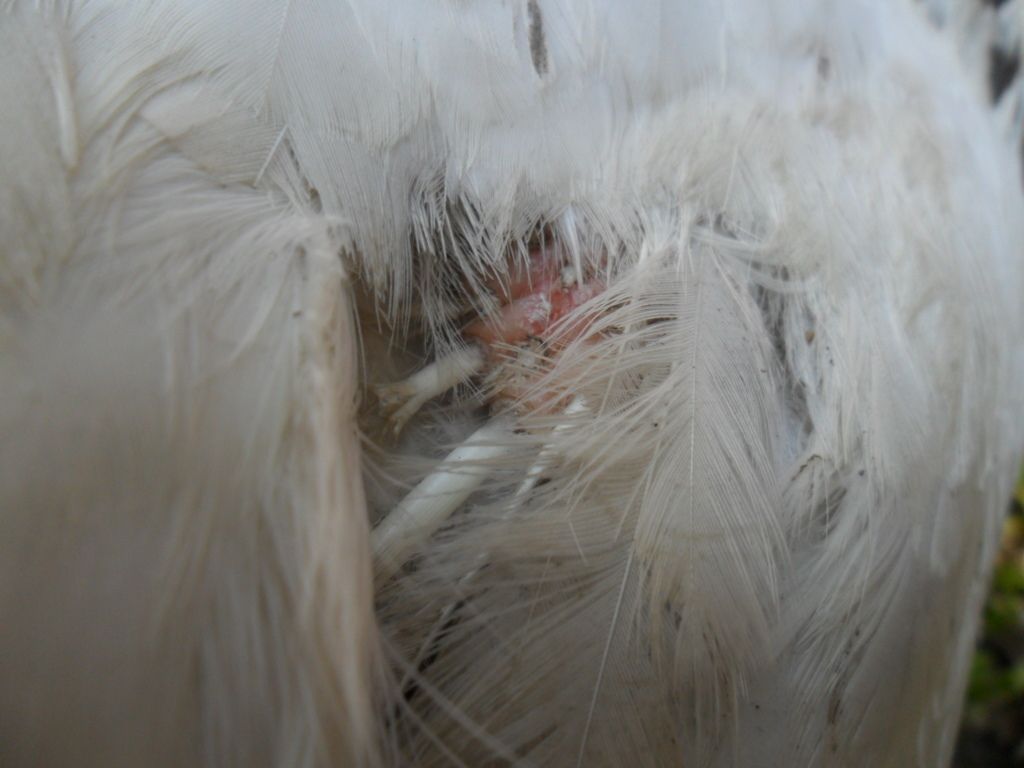 Sophia, my delaware hen who has a twisted back, has a small patch of bare, irritated skin that can never seem to grow its feathers back. Its not that visible, but i'm worried the other hens might peck it and it may hurt her. Any home remedys I can put on it to make the feathers grow back? I've heard of blu-kote to keep the other hens away, but I'm not even sure its that, its just that the feathers aren't growing back?