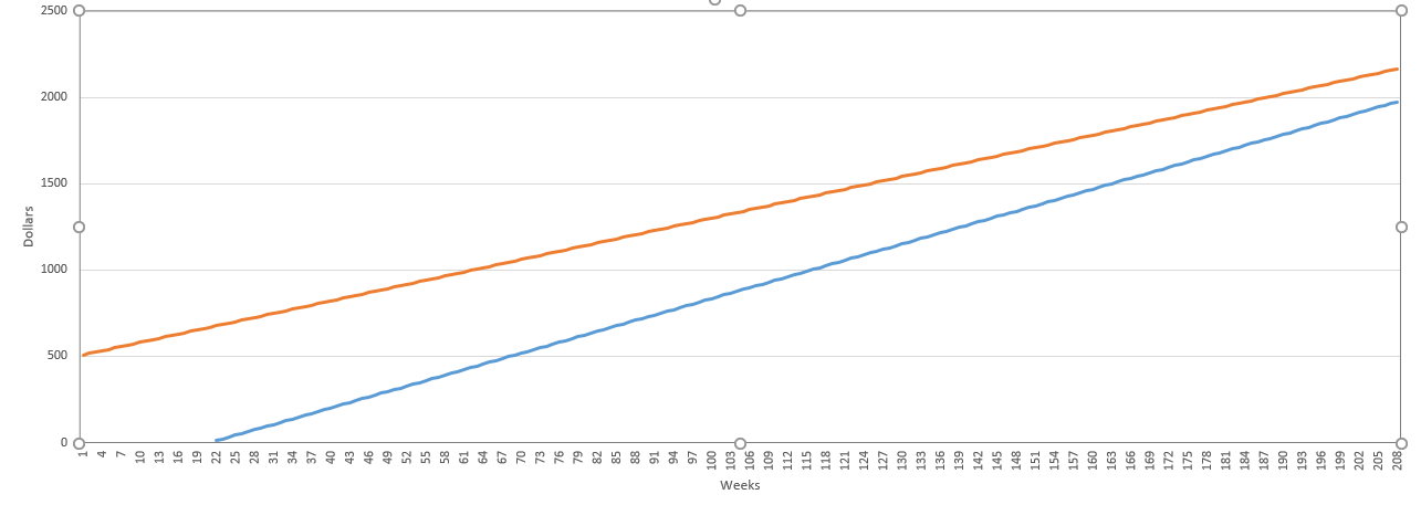 Chart below shoes projected results with 33 cents an egg and 50 cents per bird per week of treats, if I can get good stuff that cheap while accounting for my SO's generosity with the birds.