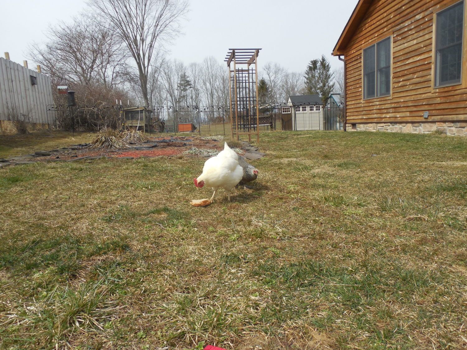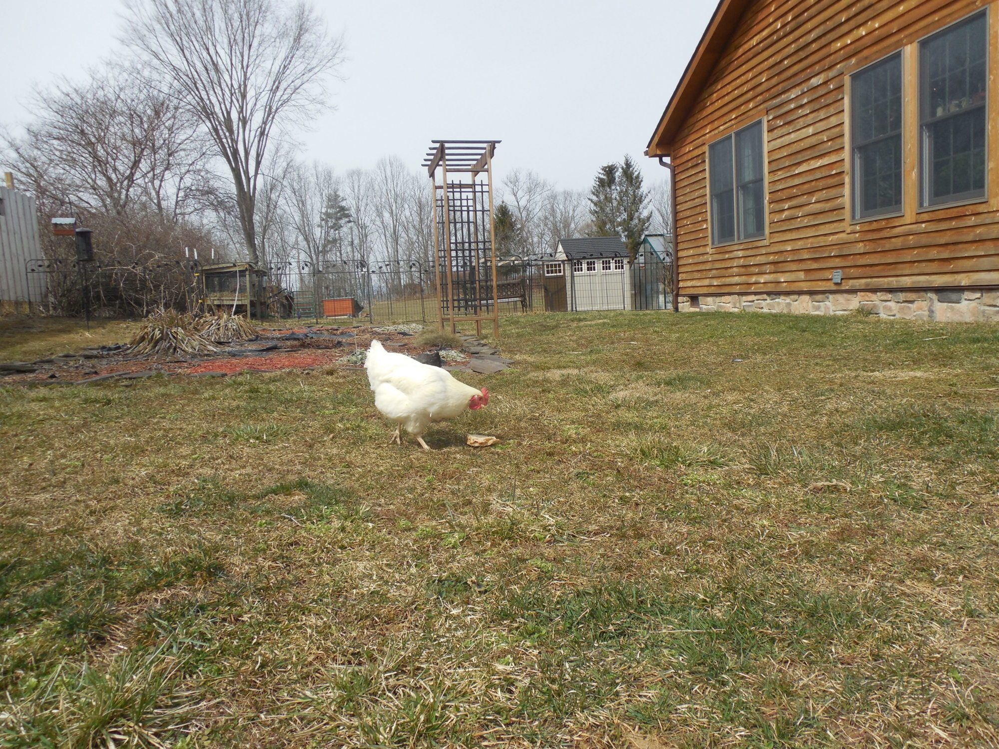 LOL! I have an Americana, Heer, who will escape any cage I create for her except her own coop! She is a real flyer, and once she flew up and over a 6 ft wooded board I put up around her pen to keep the other 4 Americana's in their small area. Ill try to take a picture of her escaping, but usually when I see her getting out I just run after her and try to put her back!