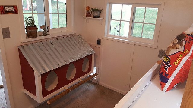The roost still needs to be painted. The box below is made from 2 x 6's with a plywood bottom that had a plastic panel inside it. The plastic panels are available at Home Depot.