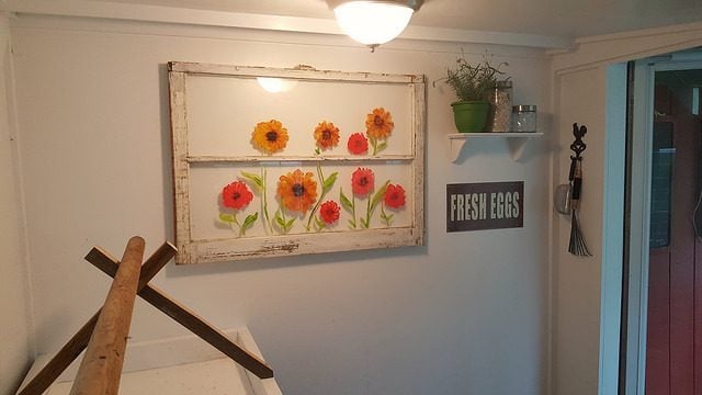 Finished the rest of the hardware cloth and got a screen door on the outside of the coop. My wife has started to decorate already.