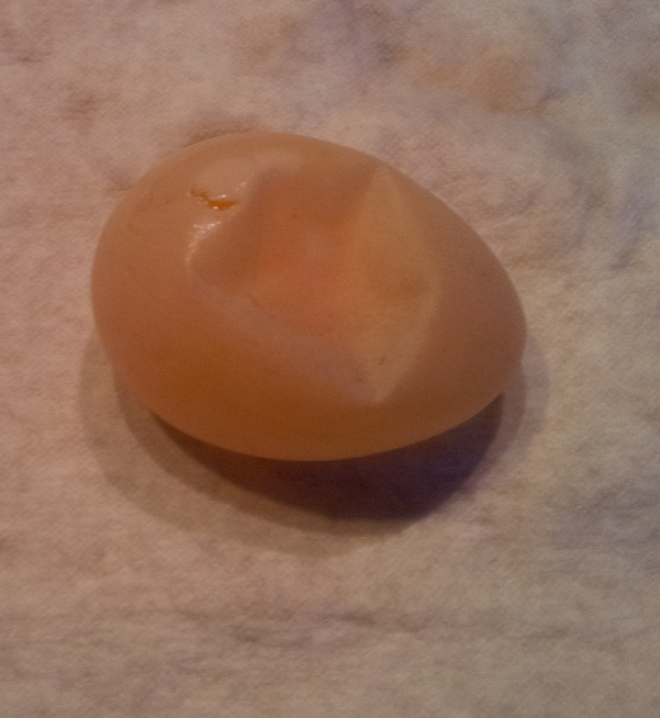 I had one of my hens lay an almost identical egg to the one in your photo. The hen was out all day the day before while I was working on the hen house so she didn't come in to lay. The next morning she laid the deformed egg and about ten minutes later she laid another perfect egg. I put it down to the second egg pushing against the first egg as the hen held it until the next day thus laying the two right after each other. She has never done that again, it sounds funny but I now know when she wants to lay a egg as she starts a sort of low pitched cluck as if she is talking to me.