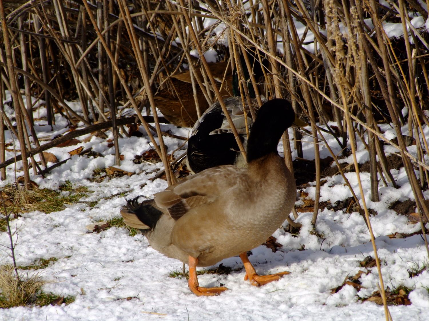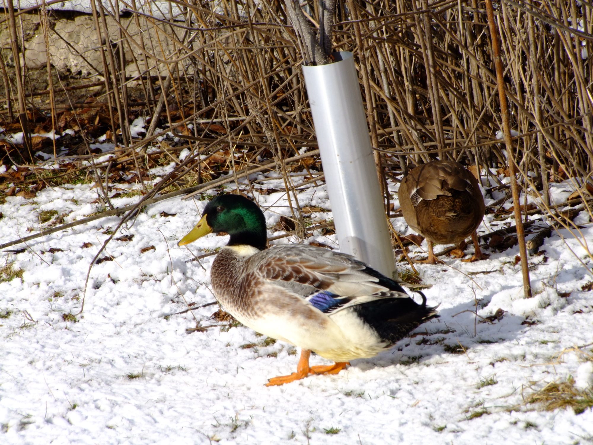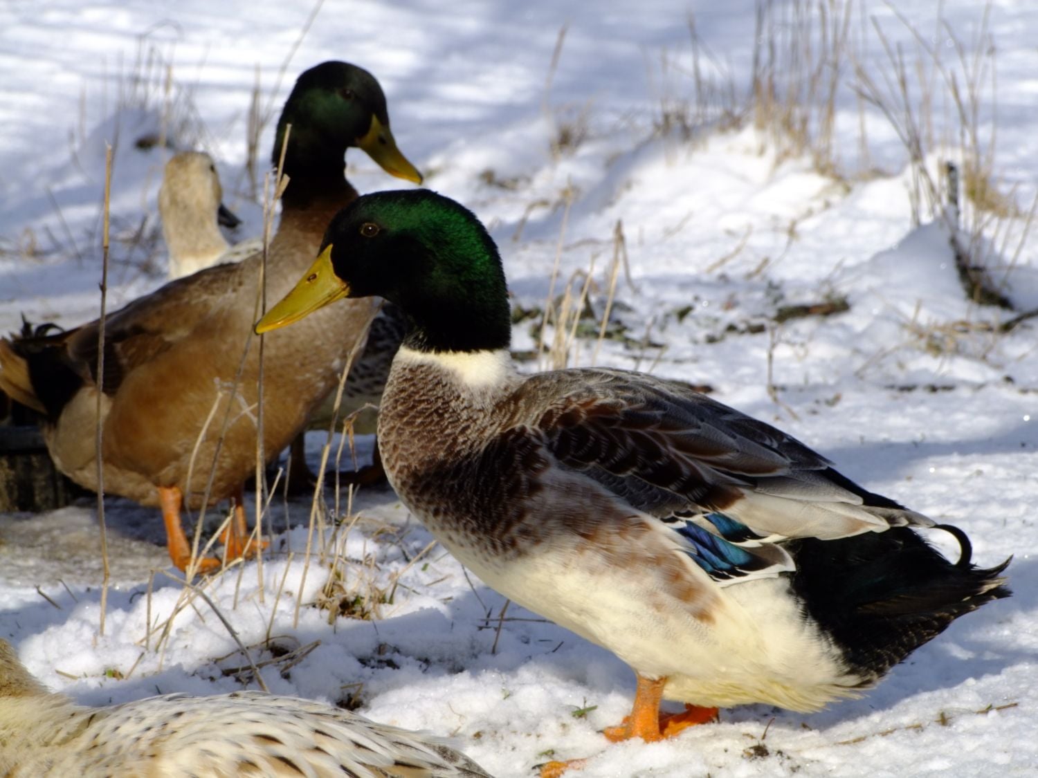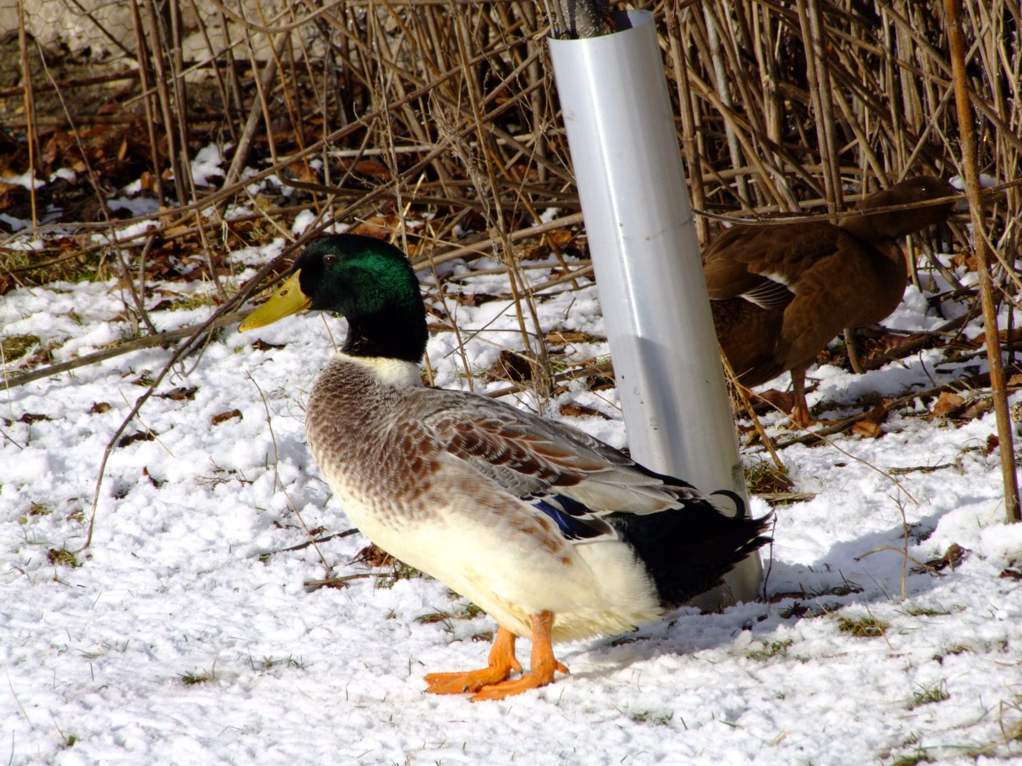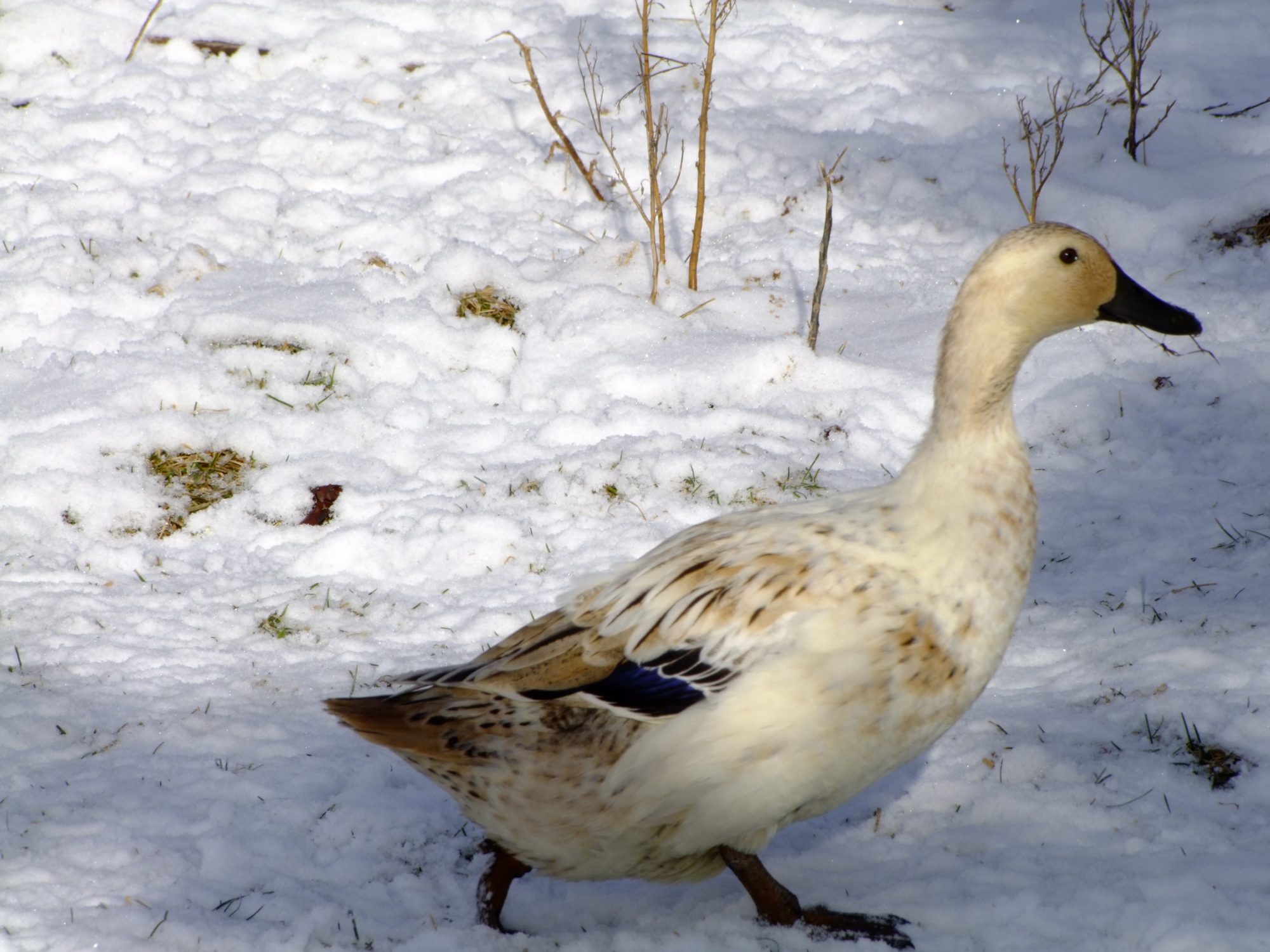 Here's a few photos I took of my Welsh Harlequins, and Khaki Campbell's this morning. I love watching them in the snow. I'm going to have to get some more since my hen to drake ratio is way off. Anyone recommend a hatchery or breeder that ships? Anyone have both breeds? I'm considering just keeping one kind, I love the looks of the Welsh but I really love the eggs which is how the Campbell entered the scene. If you've had both which is the better layer? lays the most, most regular layer, most long lived w/ production in mind. I've also heard that welsh are a better table bird then the Campbell any input there, these are my egg ducks but its a good thing to know. What breed is more suited to free range? I lost 3 hens this summer to crazy accidents, 2 were Khaki Campbell so I'm wondering if it was bad luck or if they aren't as bright as the Welsh Harlequin. one ate a wild mushroom in the yard, one got drunk off fermented fruit off our tree and tried to sleep it off on her back in the blazing summer sun and died of heat stroke, and one drowned herself in a bucket, I was starting to really worry I might have to have a intervention for depressed ducks or something, but it was awful losing that many in such a short time