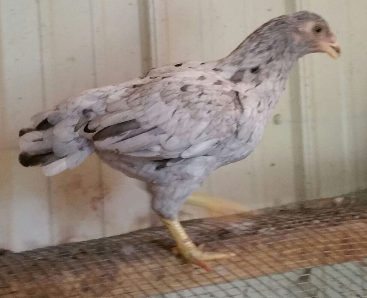 I'll have to research up a bit to figure out what the first cockerel is, but the next pullet is a Silver Duckwing Old English Game Bantam. The last pullet is a Splash Cornish Bantam.