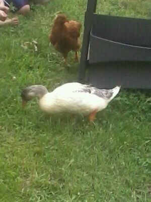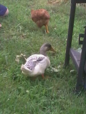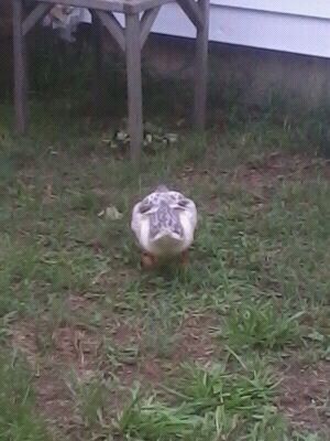 Here is some updated pictures of my duck, it is about 8 weeks old now. Not sure what the sex is or the breed of my duck! Can anyone give me any ideas? I am thinking it is a girl since it has never gotten that little curled up feather on its tail. You can't tell by its voice really because it has the oddest quack I have ever heard. (Sometimes I swear it is trying to cluck like the chickens lol) If anyone has any ideas I would appreciate the help. In case it is hard to tell with the pictures, its feathers still have a faded yellow tint and the darker ones are a dark gray.