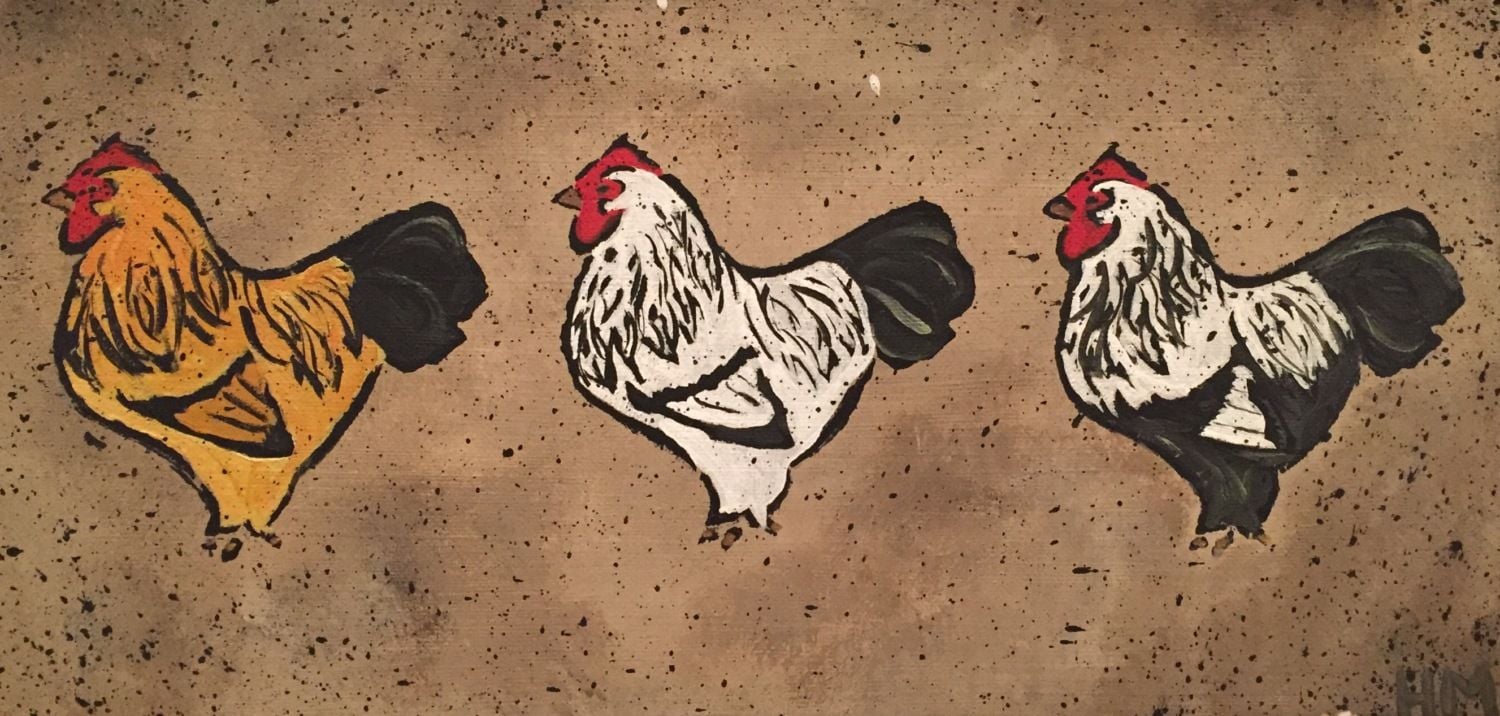 May I share my print painting of some Brahma roosters? Your painting is amazing! I painted mine because I couldn't find a normal chicken painting to go with my "I Dream of a Better World Where Chickens Can Cross the Road Without Having Their Motives Questioned" sign. Your painting would've worked great too!